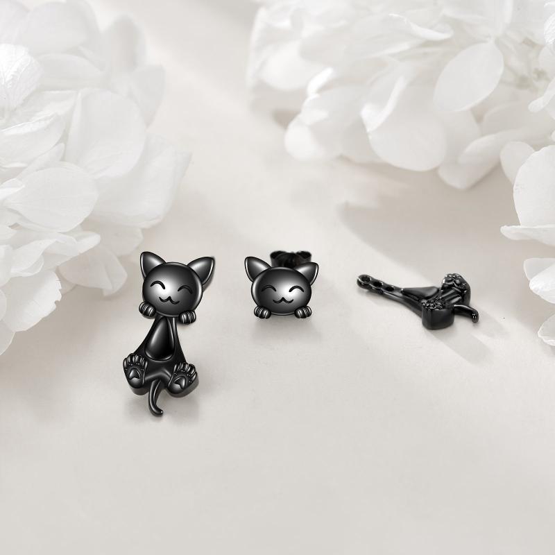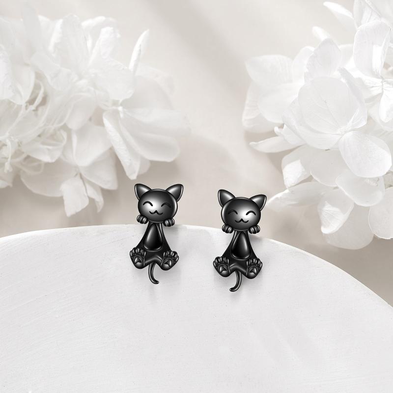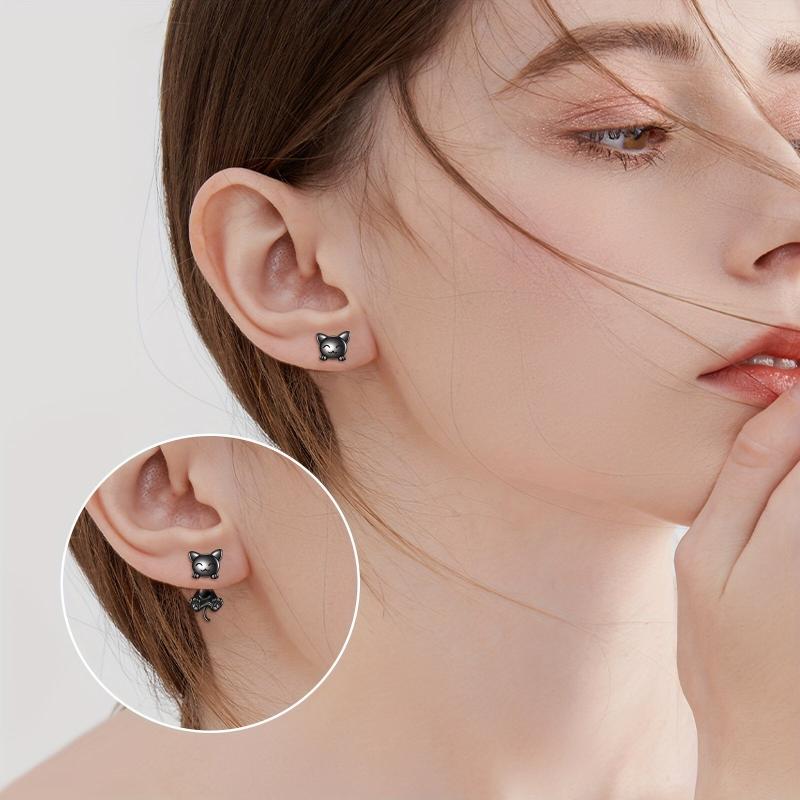 Adorable front back cat earrings made of 925 sterling silver. Perfect accessory for cat lovers. Suitable for women.
