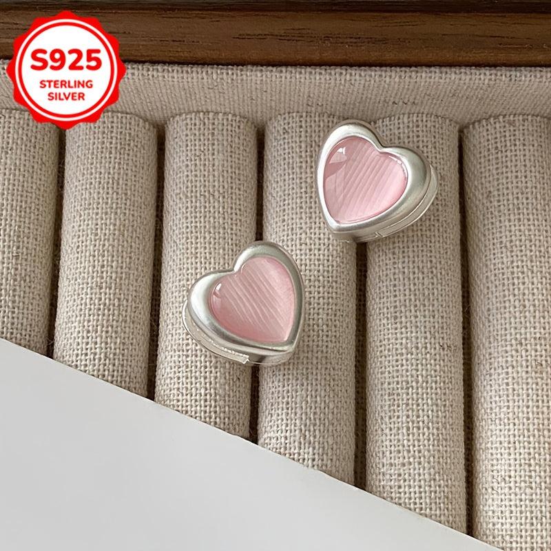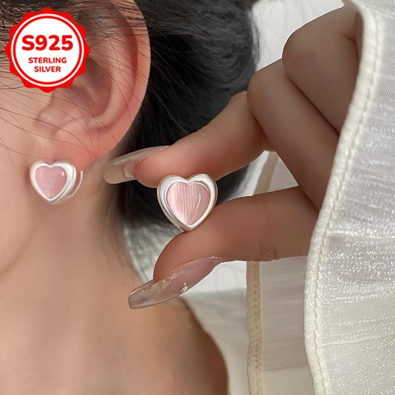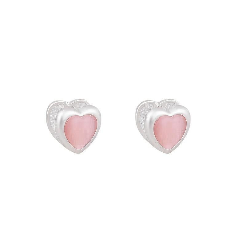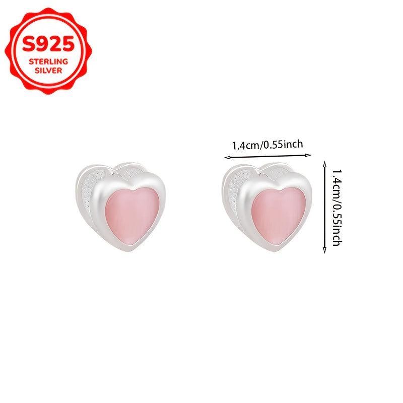 These adorable heart-shaped earrings are made of hypoallergenic 925 silver with cat's eye stones. Perfect for daily wear or special occasions.
