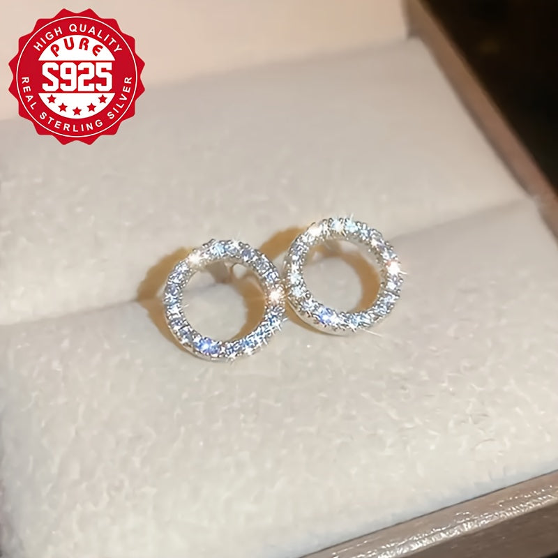 These 925 sterling silver circle stud earrings feature synthetic zirconia inlays, making them perfect for daily wear. They weigh only 1.2g, making them comfortable for all-day use. An ideal gift for women with sensitive skin due to low allergy potential.
