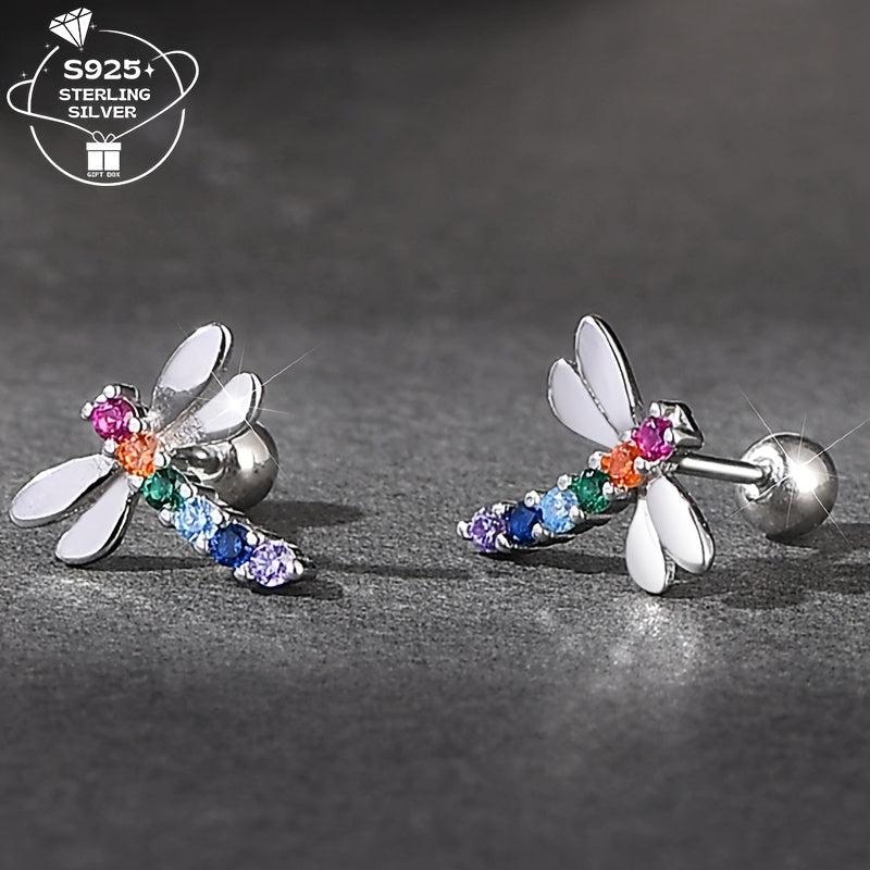These gorgeous dragonfly earrings are made of 925 silver and feature colorful synthetic zirconia. They add a touch of sparkle to any outfit.