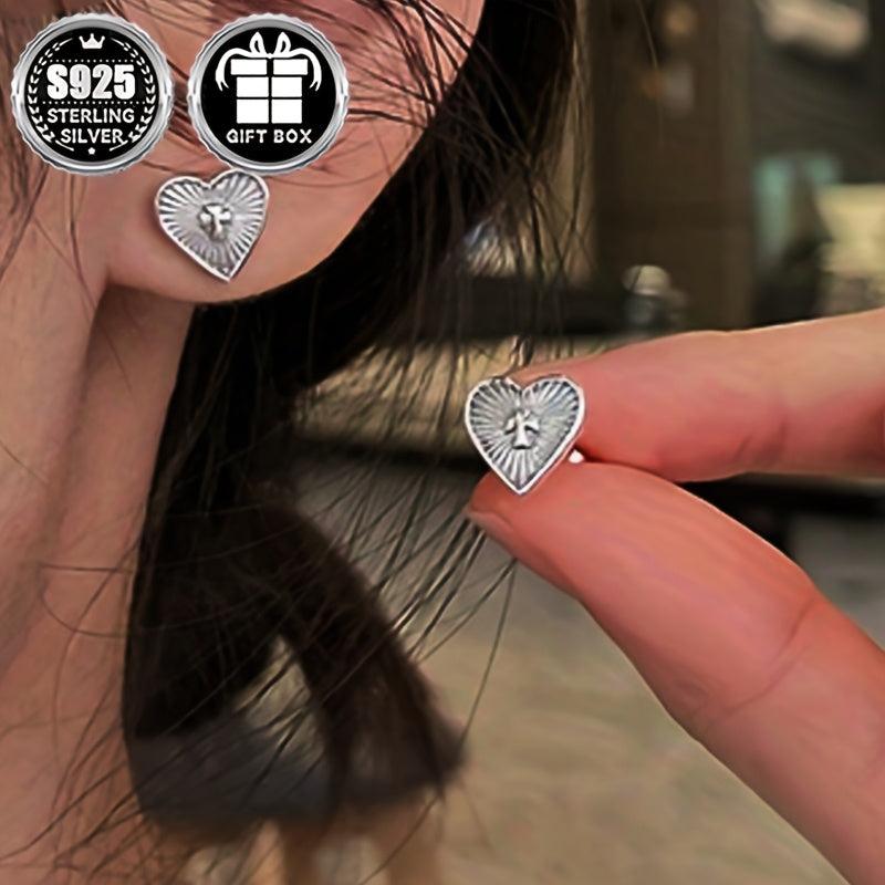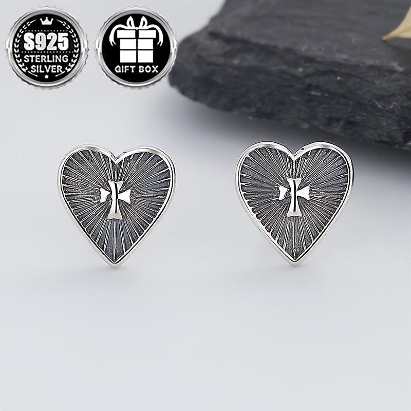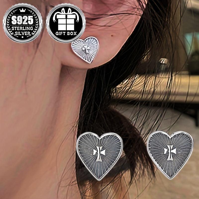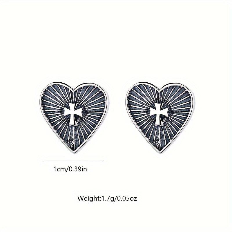 Add a touch of ethnic style with these lightweight sterling silver stud earrings featuring a love shape cross pattern. Perfect for women who appreciate literary totem designs.
