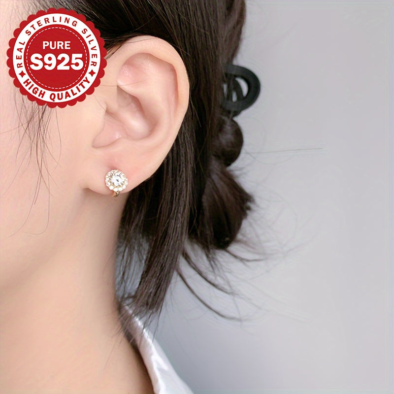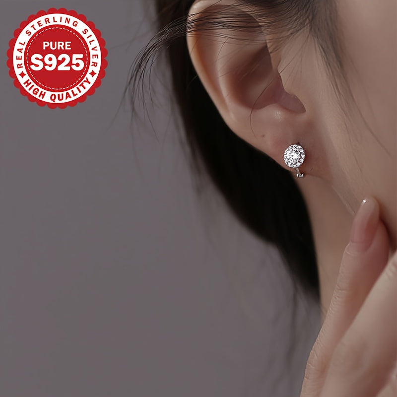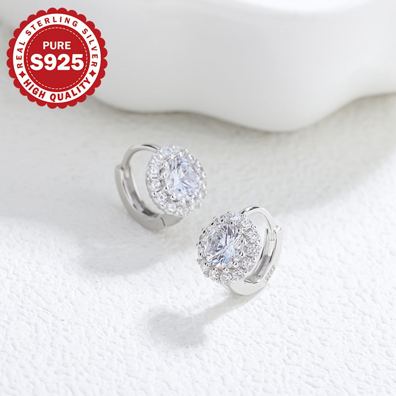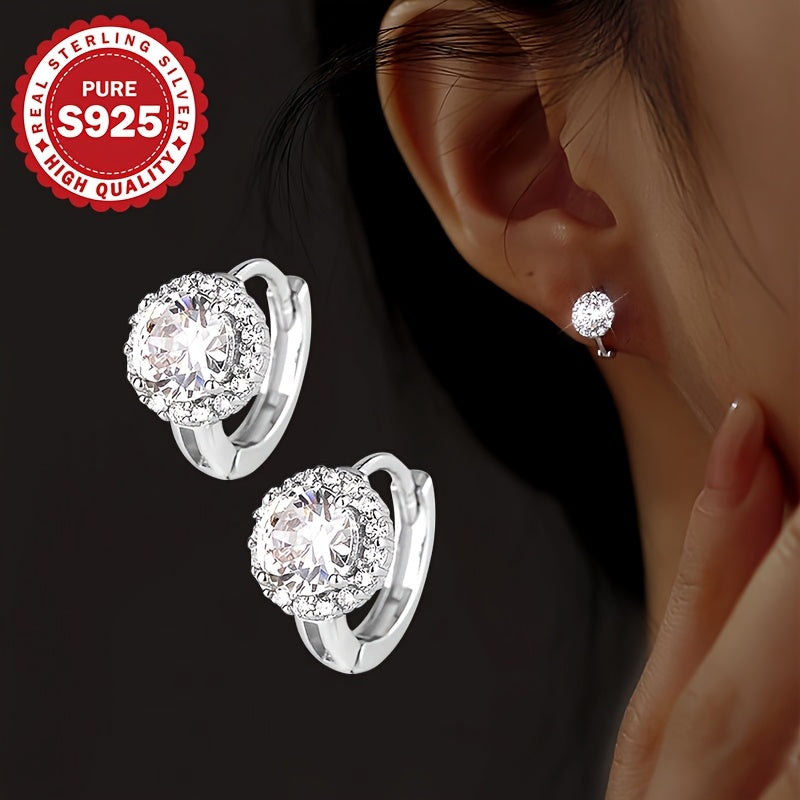 These stunning 925 sterling silver hoop earrings feature synthetic cubic zirconia for a luxurious look. Perfect for weddings, parties, and Mardi Gras all season long.