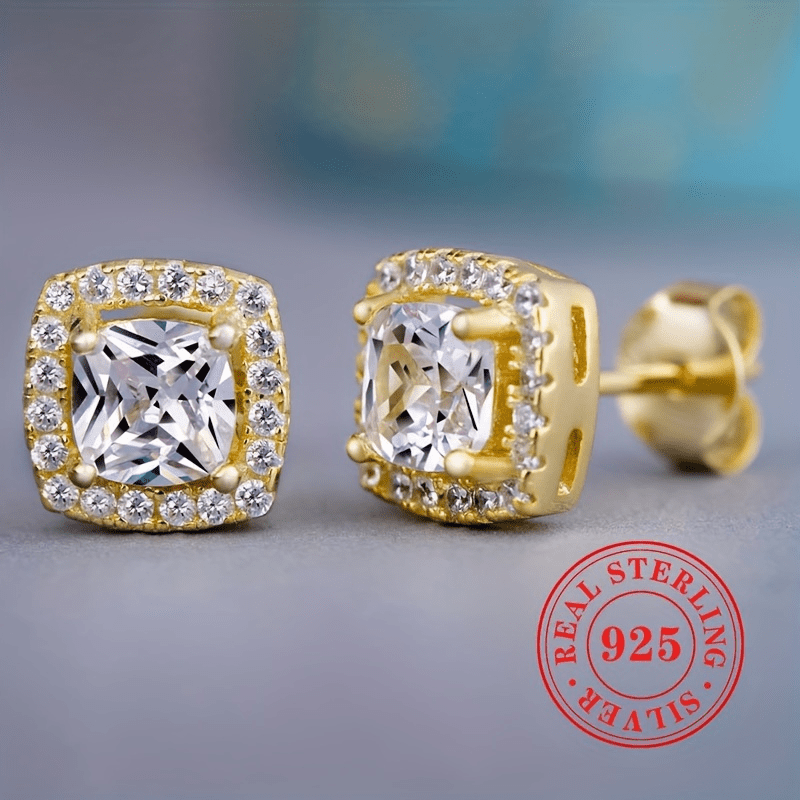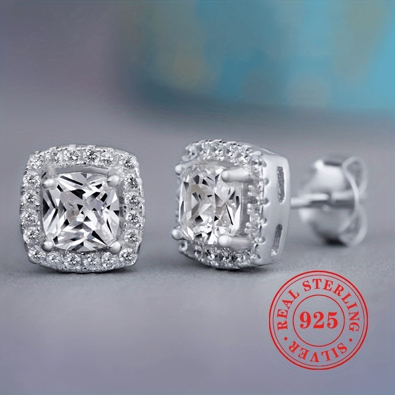 Elegant silver stud earrings with synthetic cubic zirconia, suitable for daily wear or special occasions.