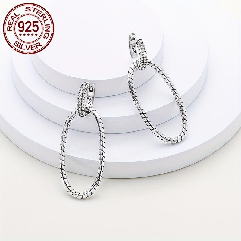 Add a modern twist to your look with these unique geometric twisted oval hoop earrings. Made of high-quality 925 sterling silver, these earrings make a perfect gift for women.