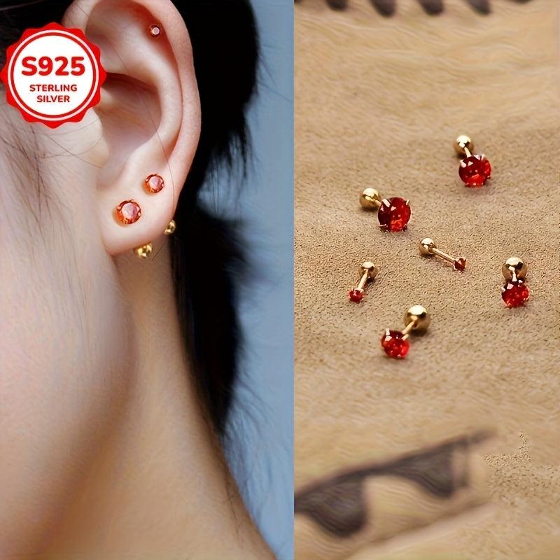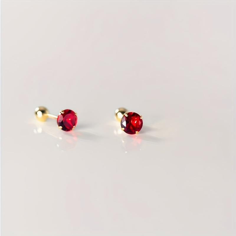 Add a pop of color to your look with these stylish 925 silver stud earrings featuring round red synthetic zirconia. Perfect for everyday wear or special occasions.