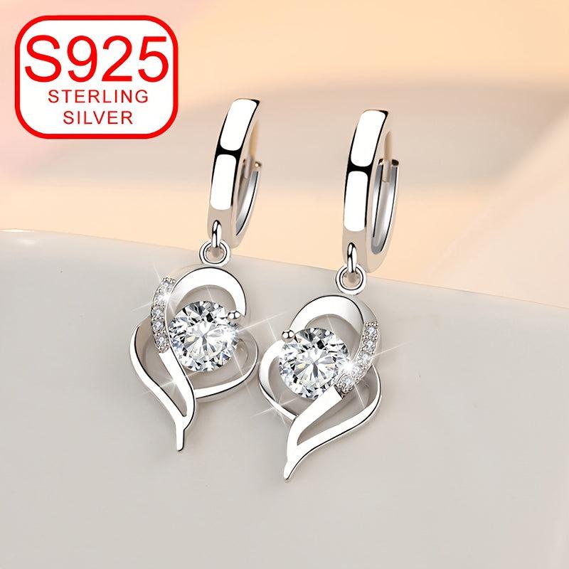 These 925 silver heart shaped dangle studs earrings are fashionable, versatile, and hypoallergenic, making them suitable for all seasons. The perfect gift for women.