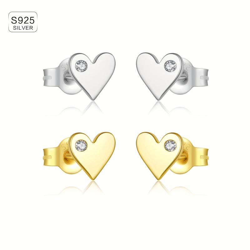 These heart stud earrings are made of 925 sterling silver with cubic zirconia, perfect for anniversaries and birthdays. They are hypoallergenic and weigh only 0.6g, making them suitable for women's jewelry.