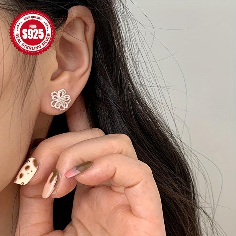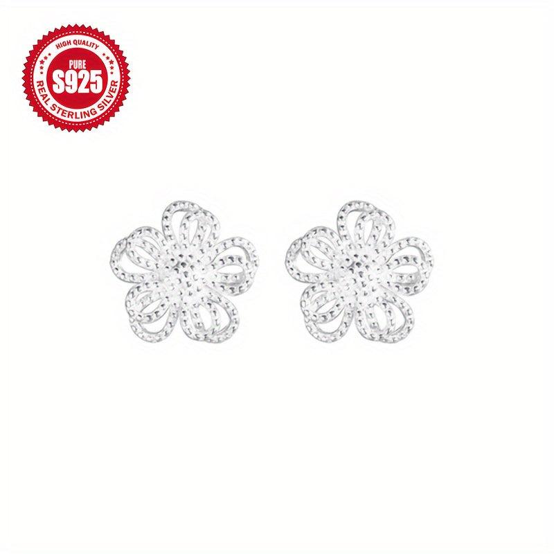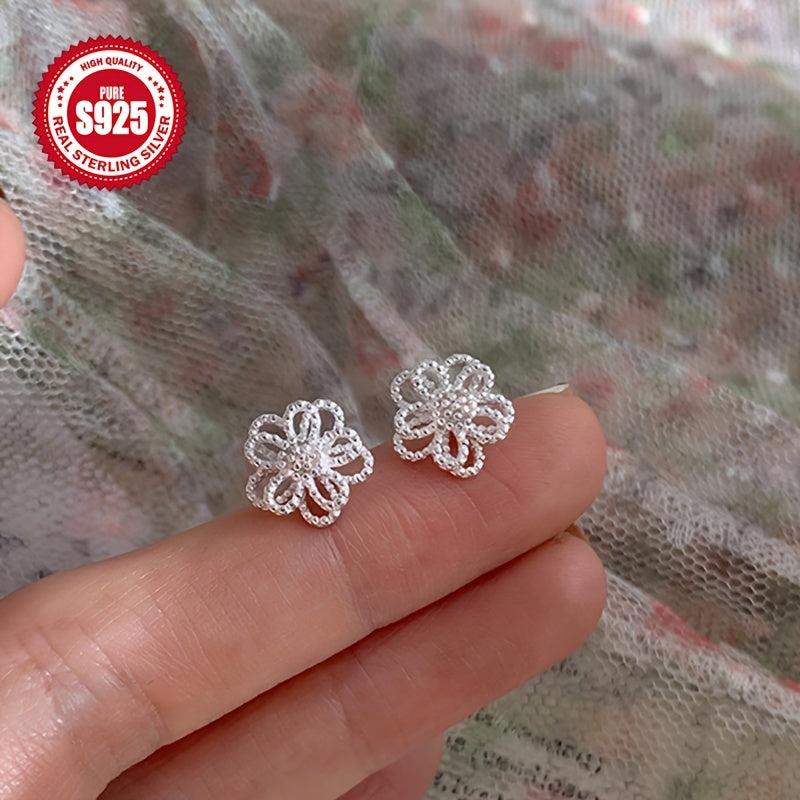 These hypoallergenic stud earrings feature a double layer hollow flower design that adds a touch of elegance to any outfit.