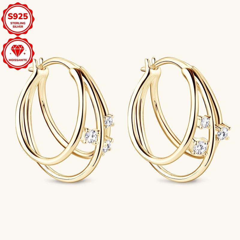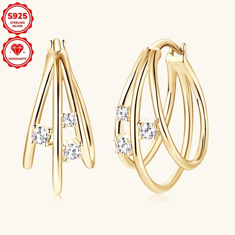 These stunning hoop earrings are crafted from 925 sterling silver with a 14K golden plating and feature synthetic moissanite stones for a touch of sparkle. Perfect for weddings, vacations, Christmas, and holidays.