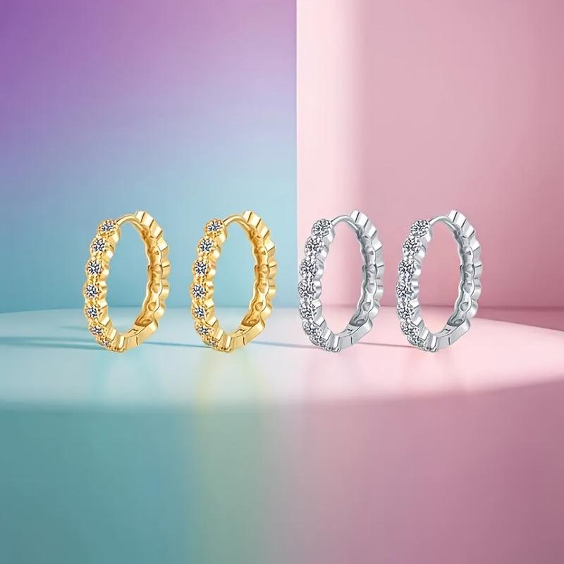 Elegant hoop earrings crafted from 925 sterling silver with sparkling cubic zirconia rounds. Perfect for weddings, dates, and special occasions.