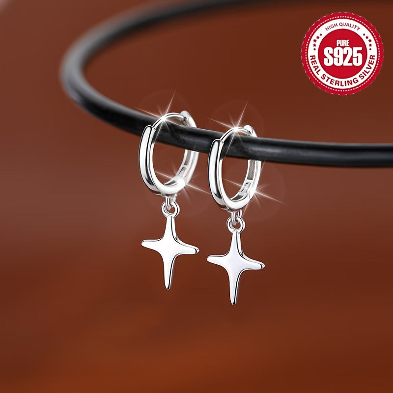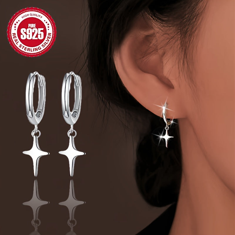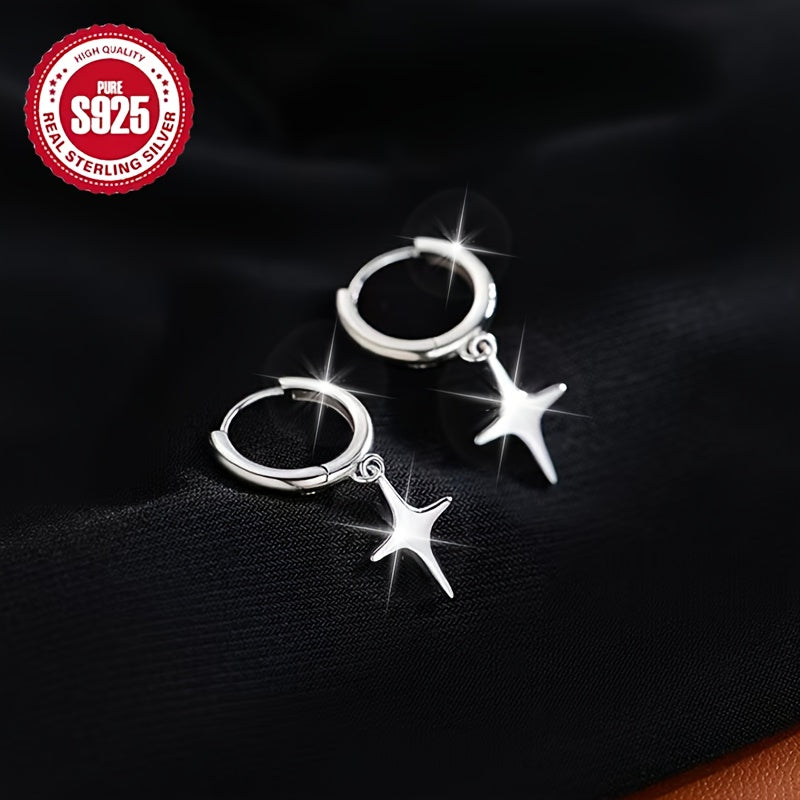 These exquisite 925 Silver Hypoallergenic Earrings feature a pair of star-shaped ear drops with a unique design. Perfect for adding a touch of elegance and charm to any outfit.