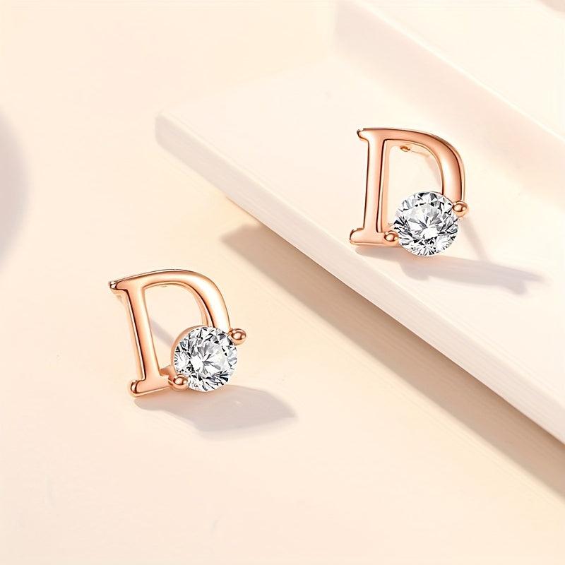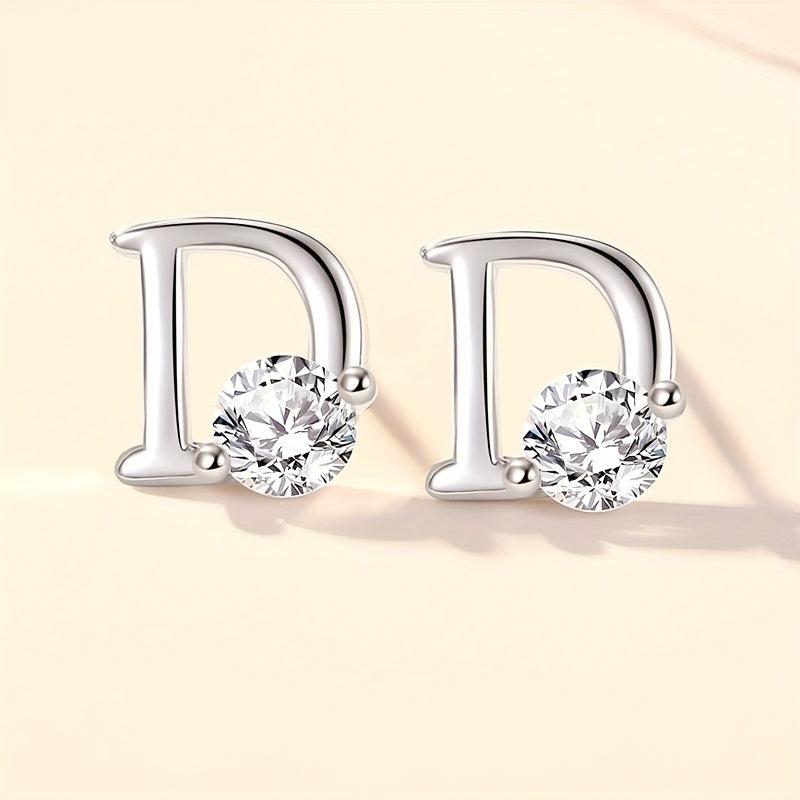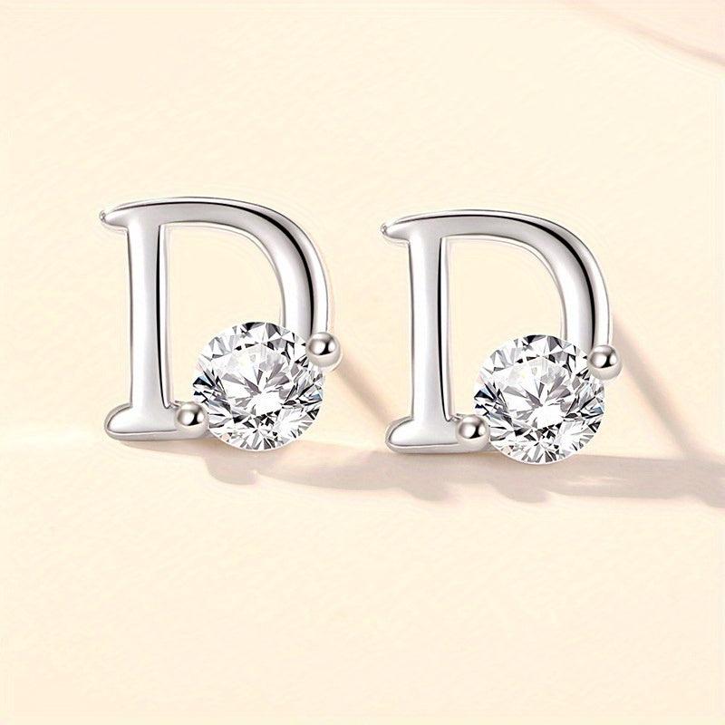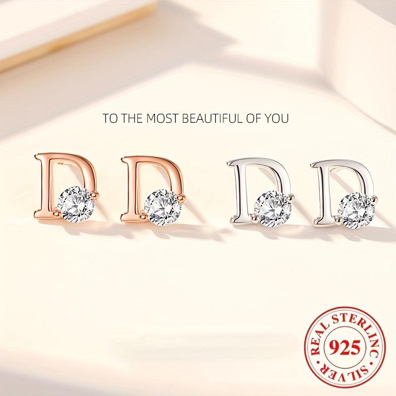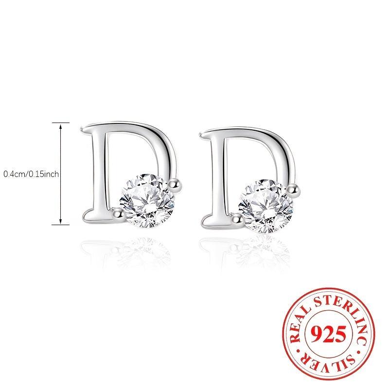 Elegant and stylish 925 pure silver earrings featuring the letter D design with zirconia accents. A perfect accessory for any outfit.