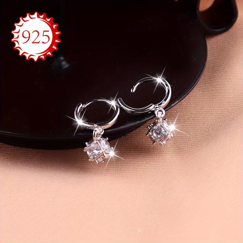 These earrings are made of 925 silver, perfect for those with sensitive skin. The design features a square round ball, making them light and versatile. Ideal for daily wear or special occasions like weddings.