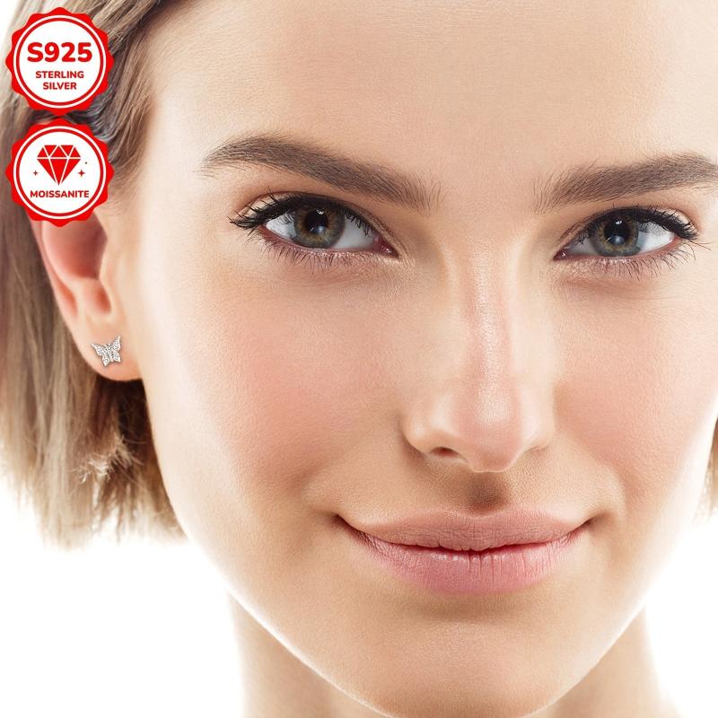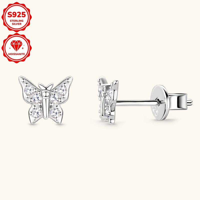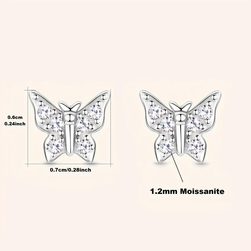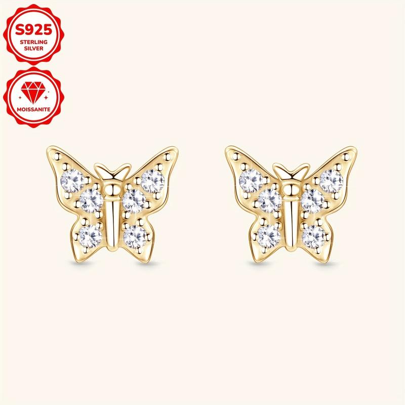 Add a touch of nature-inspired elegance to your look with these beautiful butterfly stud earrings. Made with 925 silver and moissanite stones, these earrings are plated with 14K gold for a luxurious finish.