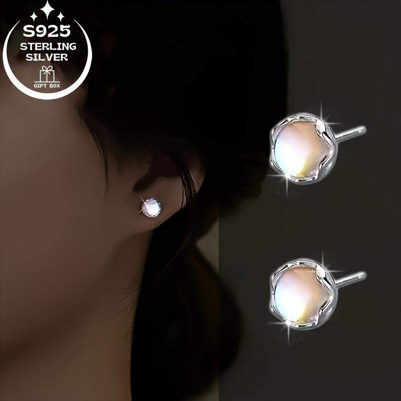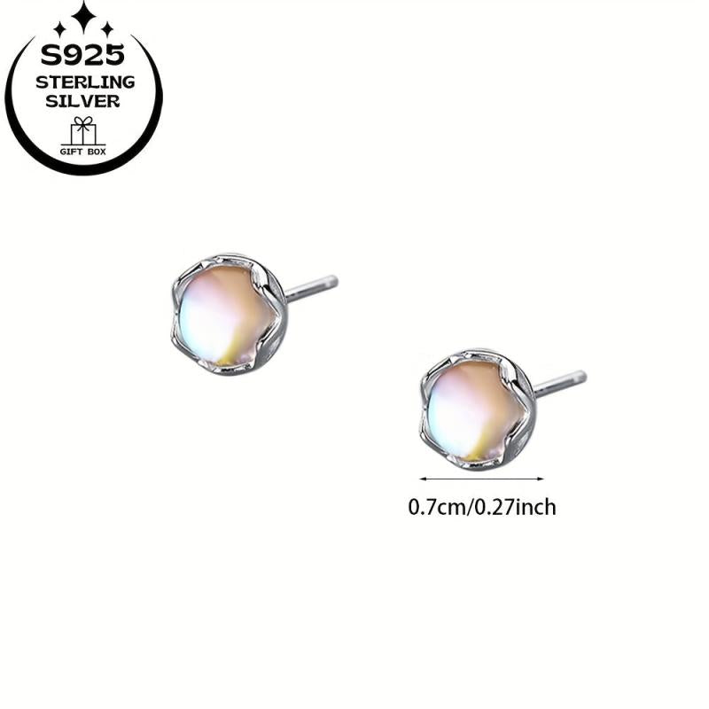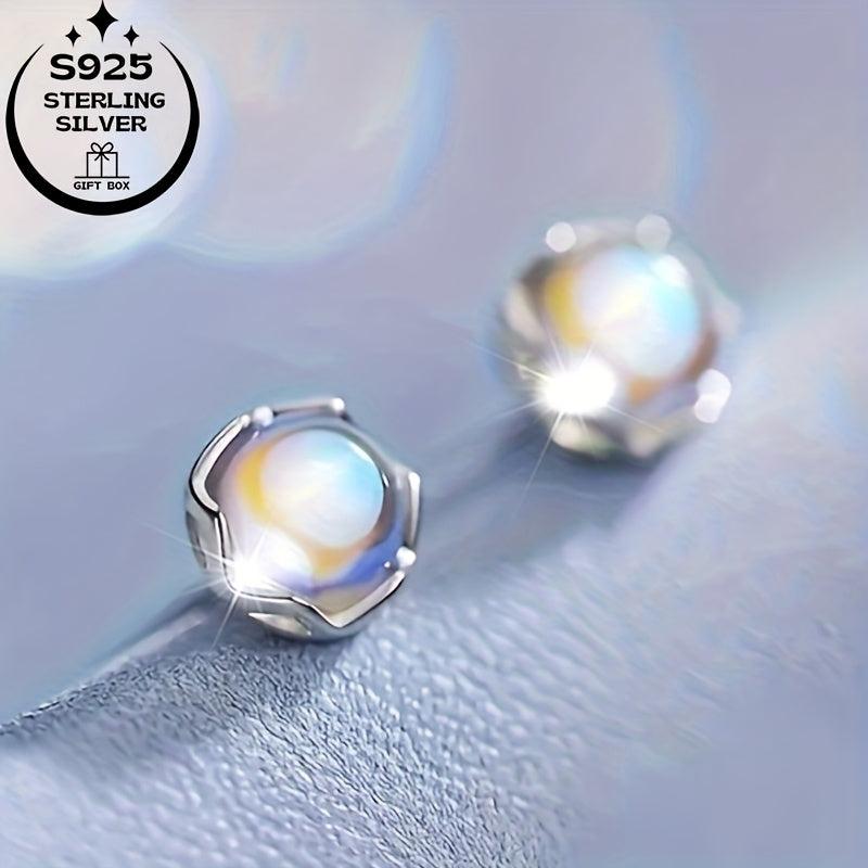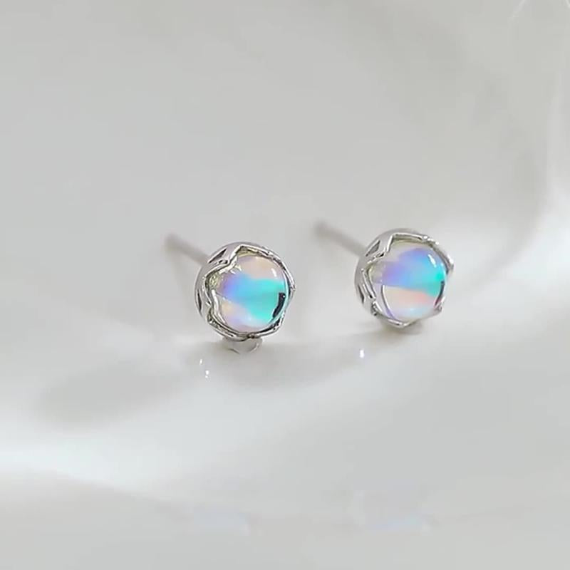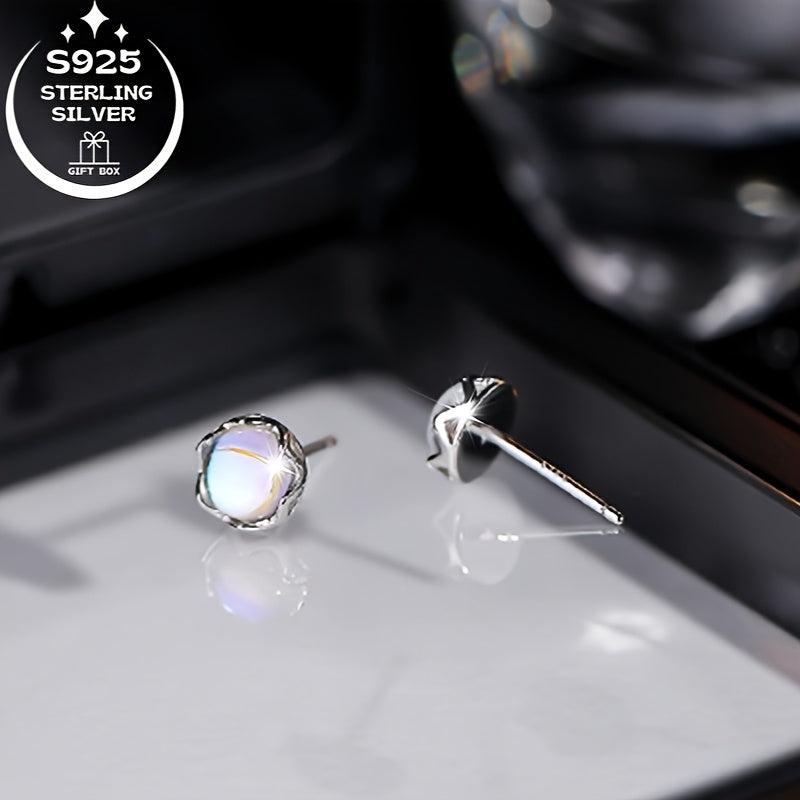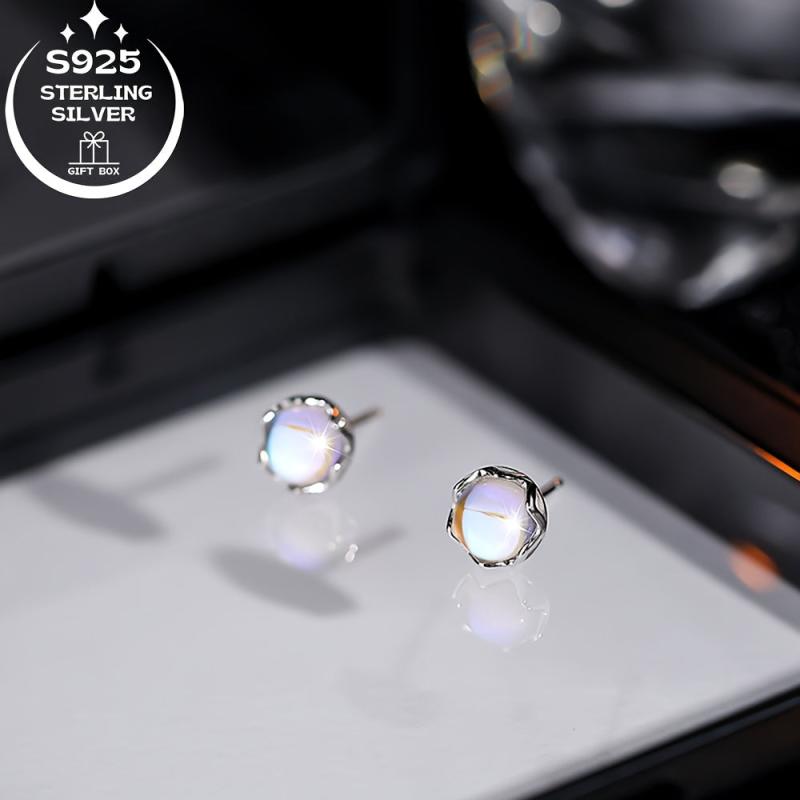 These fashionable 925 silver round moonstone earrings are perfect for daily wear or gifting. The elegant design and high quality make them a versatile accessory.
