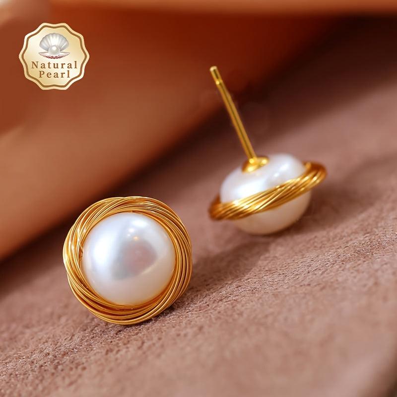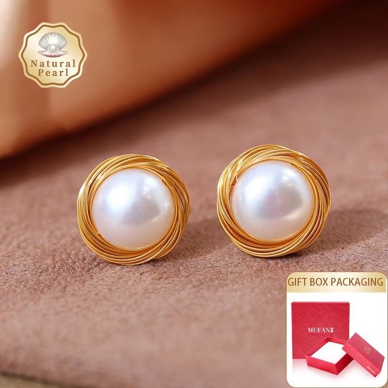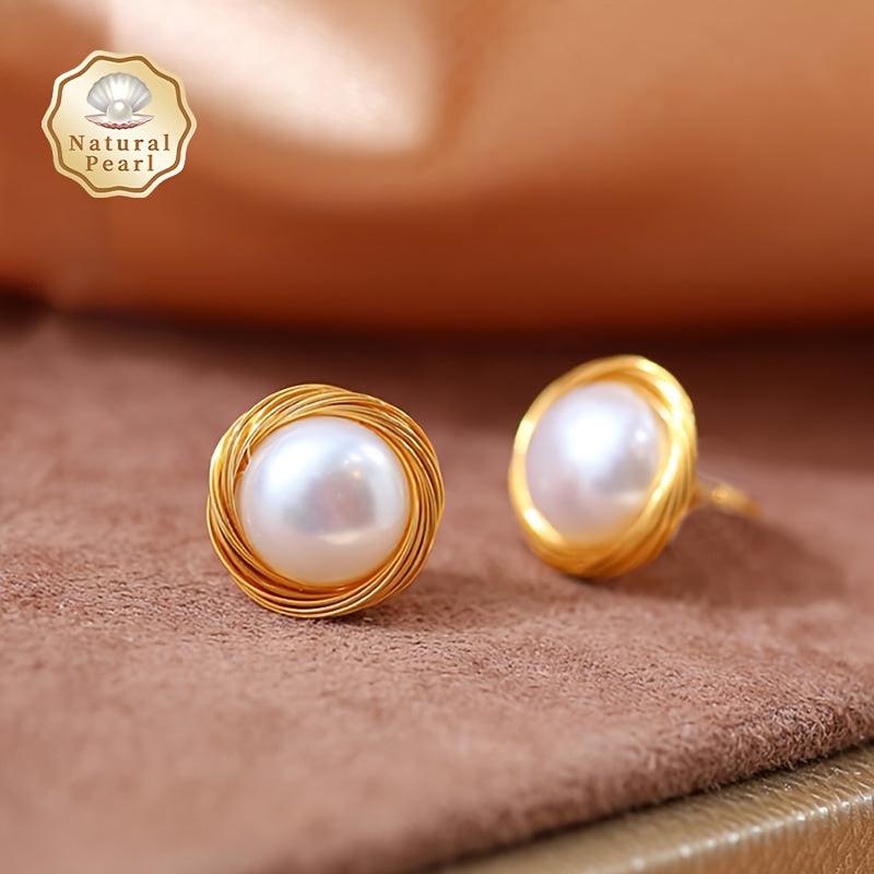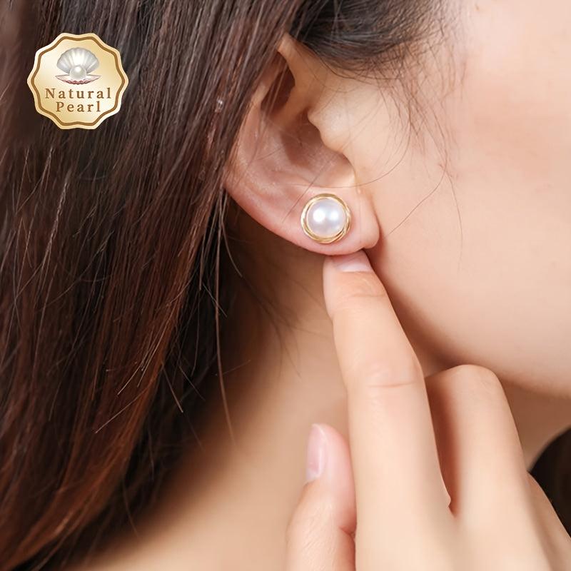Enhance your style with these elegant 925 sterling silver stud earrings featuring 8-9mm natural freshwater pearls. Perfect for daily wear or parties.