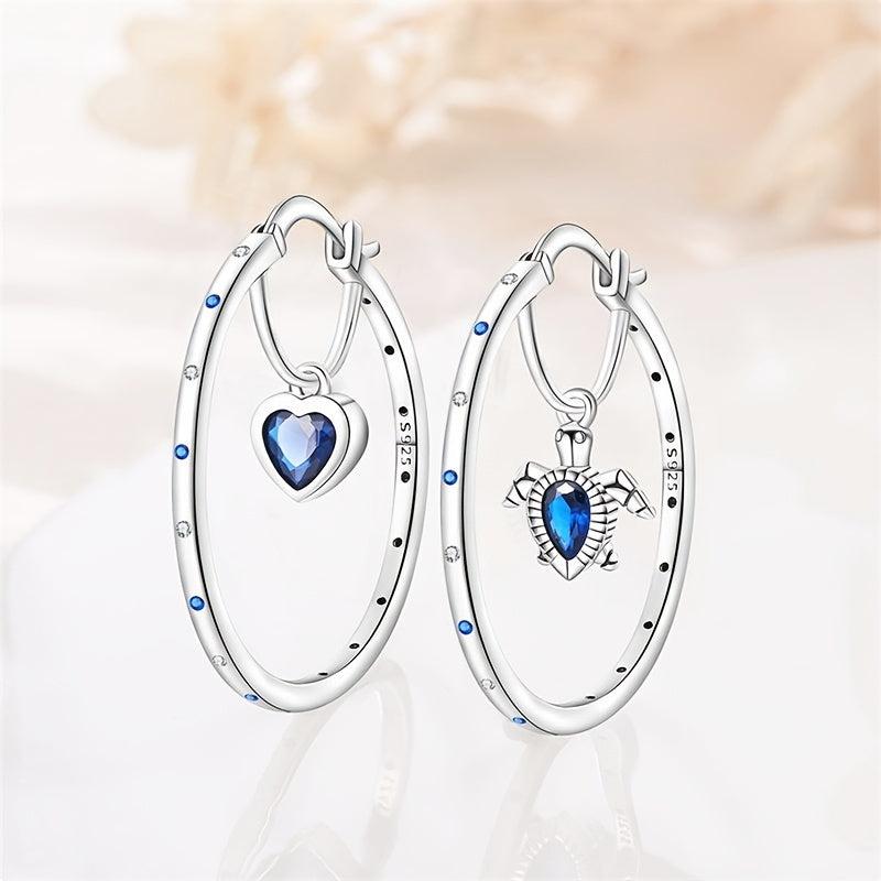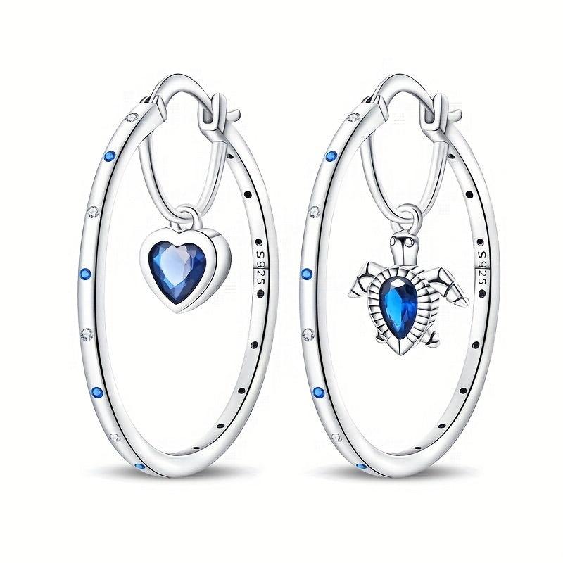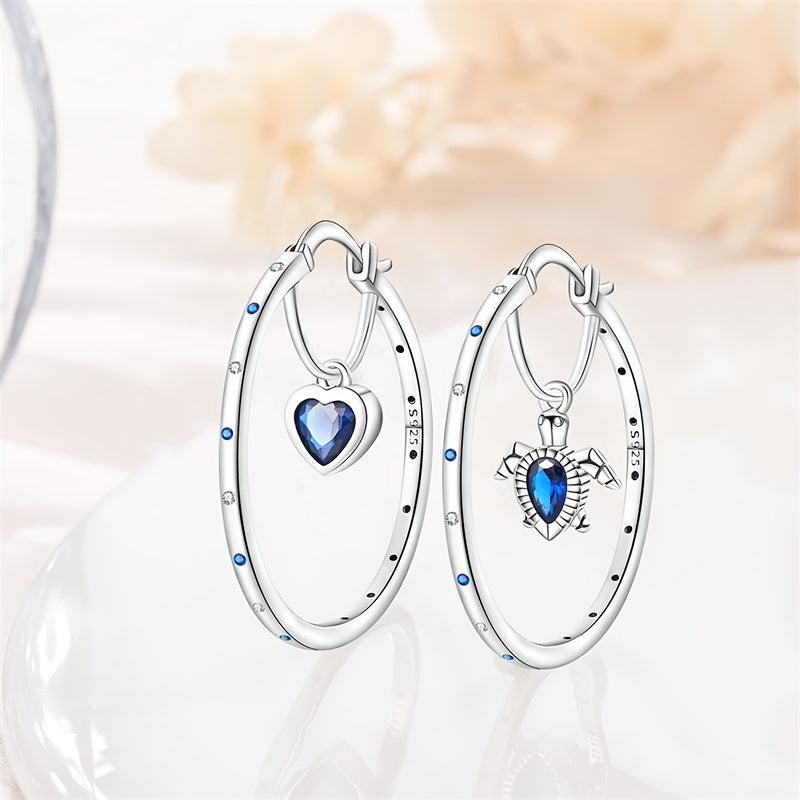 These stunning earrings feature a heart and turtle mosaic design made of synthetic zirconia. The 925 silver plating adds a touch of elegance, making them perfect for both daily wear and special occasions.