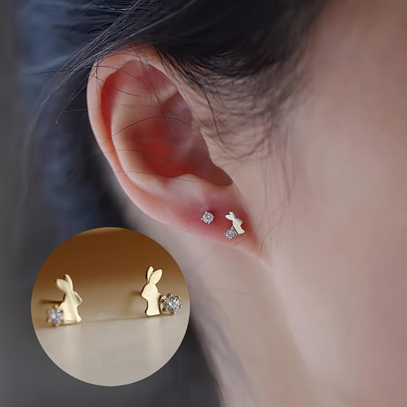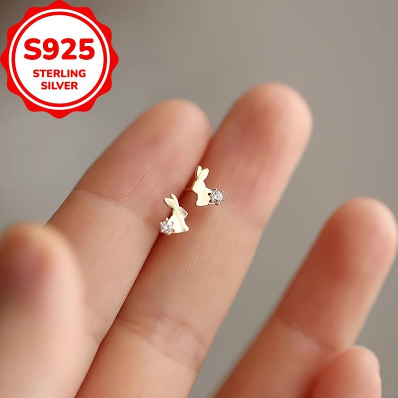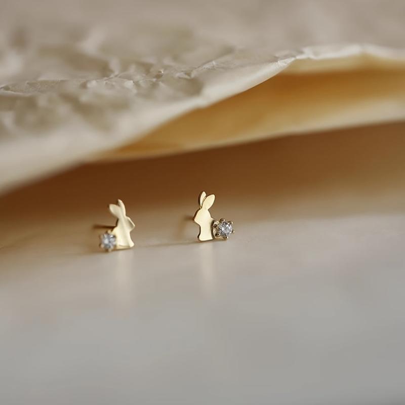 Add a touch of elegance to your outfit with these stylish rabbit stud earrings. Made of 925 silver with synthetic zirconia, these earrings are a perfect accessory for any occasion.