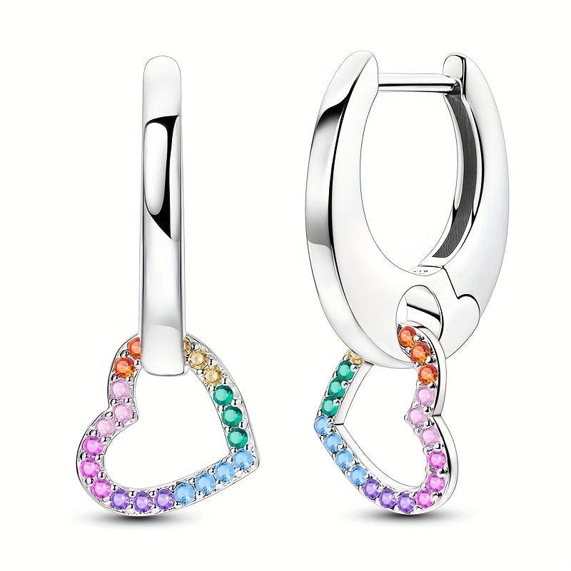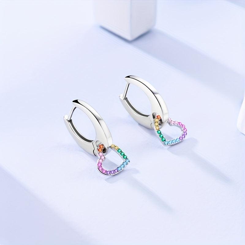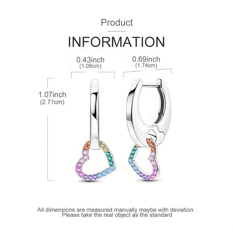 These stunning heart-shaped earrings are made of 925 sterling silver and feature a beautiful rainbow design with sparkling cubic zirconia. Perfect for daily wear or special occasions, these earrings are hypoallergenic and make an ideal gift for everyday wear.
