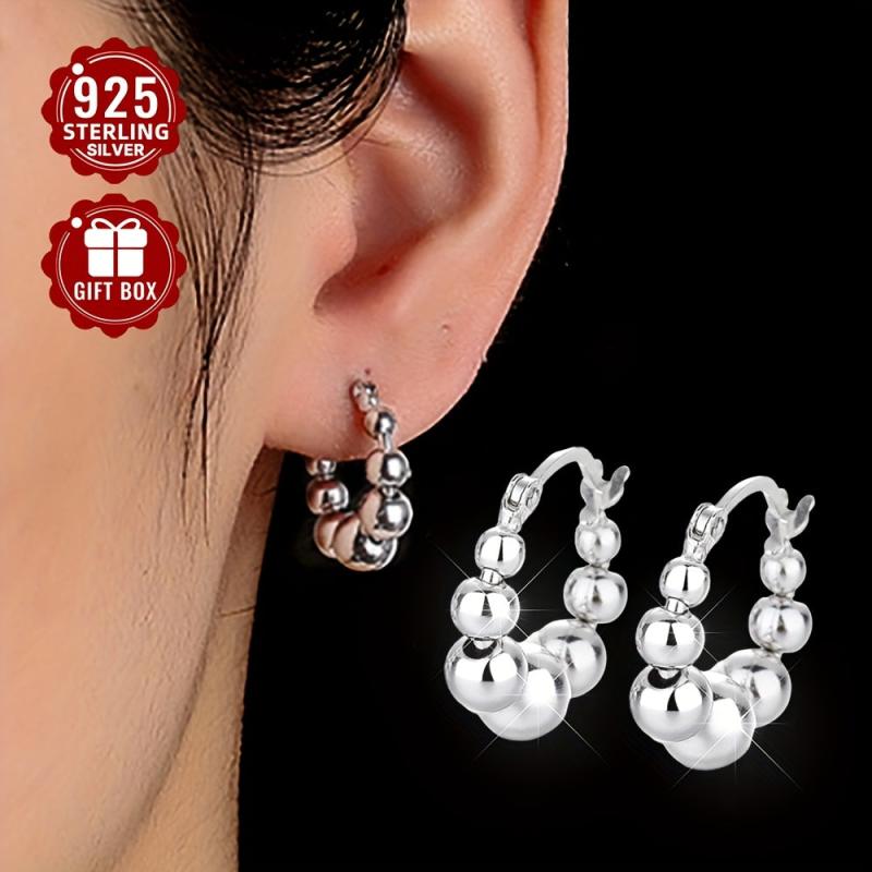 These classic round bead earrings are made of 925 sterling silver, weighing only 3.2g. They are perfect for daily wear, parties, and commuting.