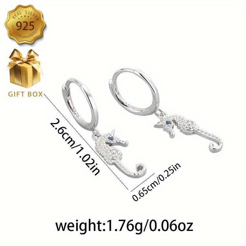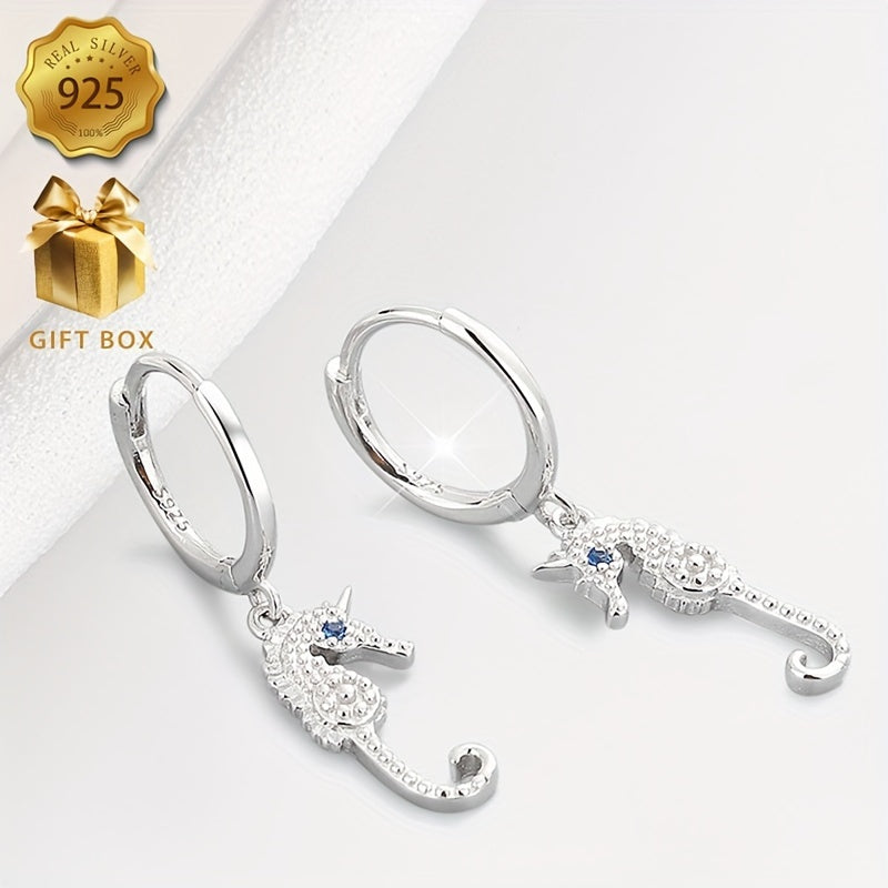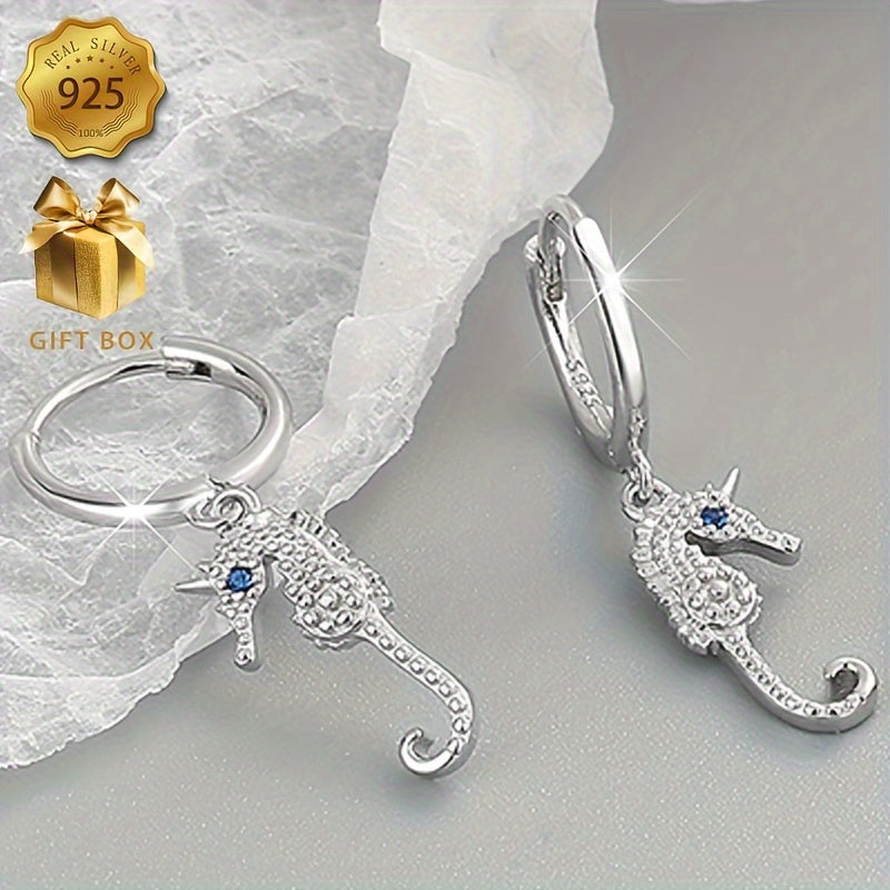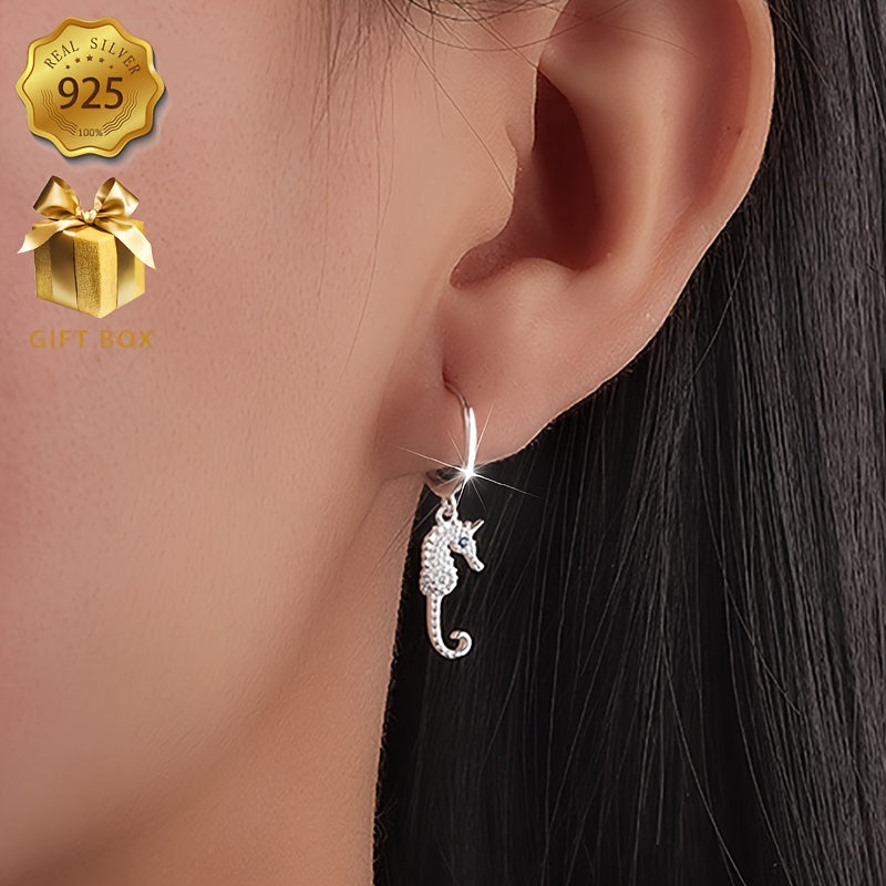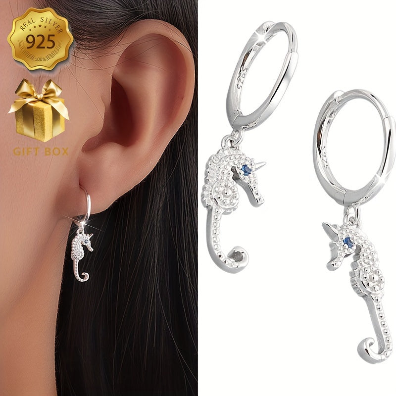 Stunning seahorse design earrings crafted from 925 silver, perfect for any occasion.