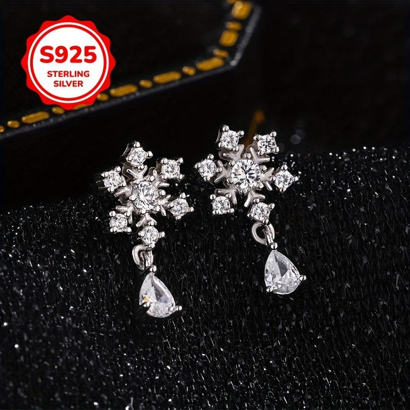 These stunning 925 silver earrings are hypoallergenic, featuring a snowflake flower design with tassel water drop elements. Perfect for elegant and festive occasions.
