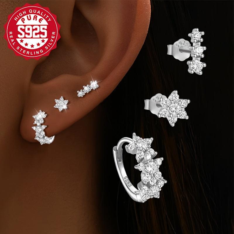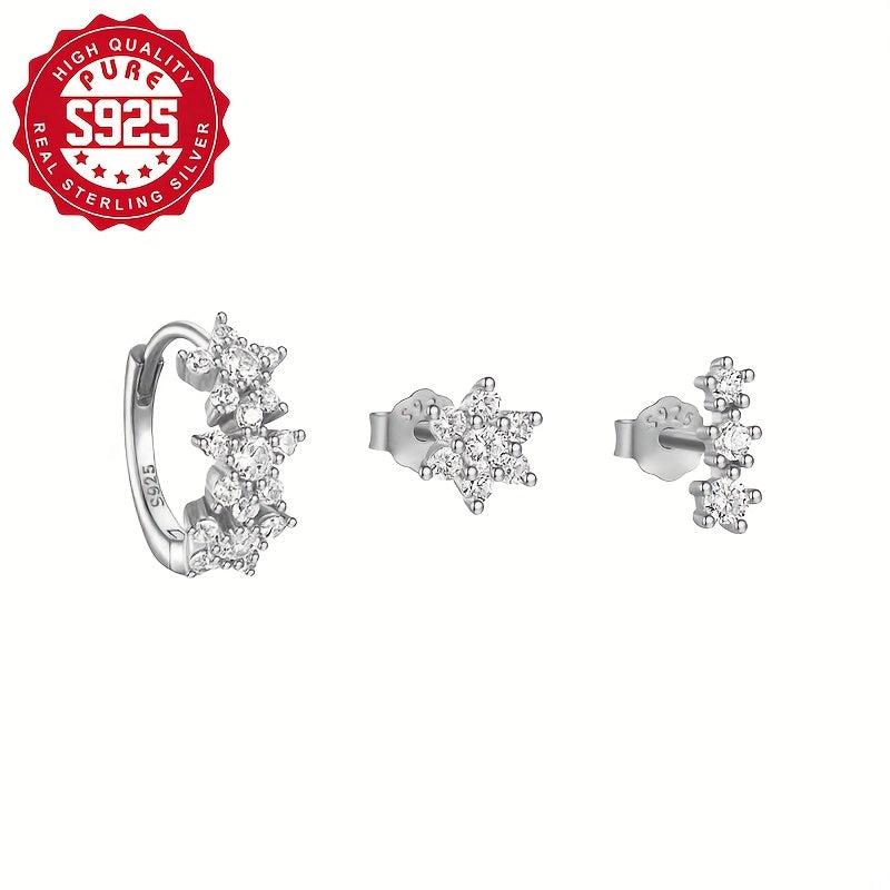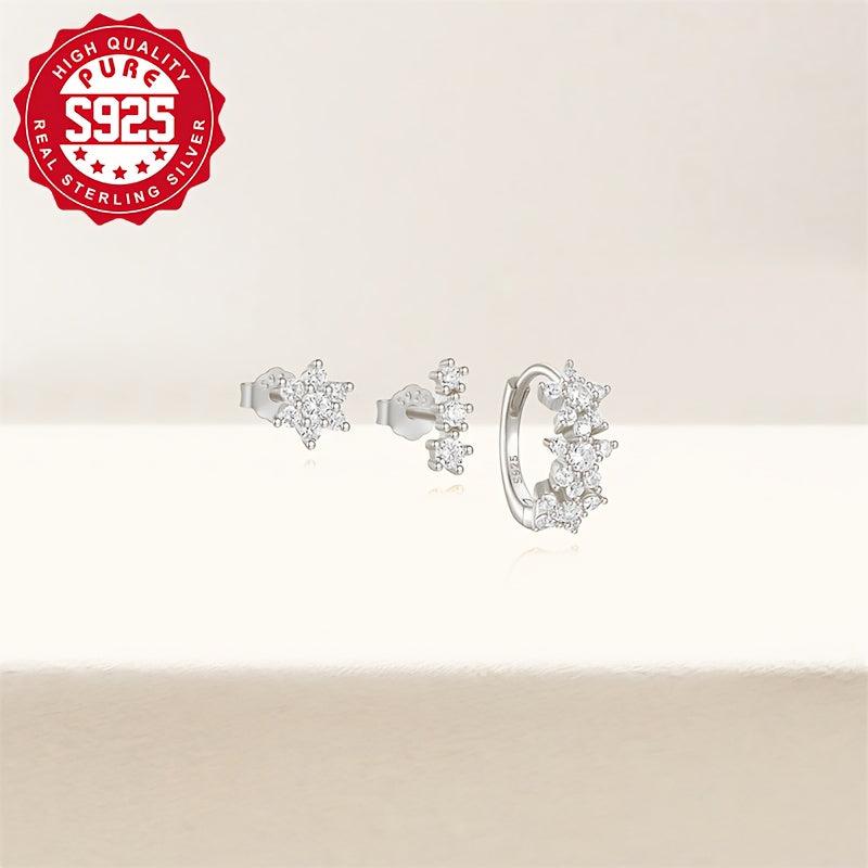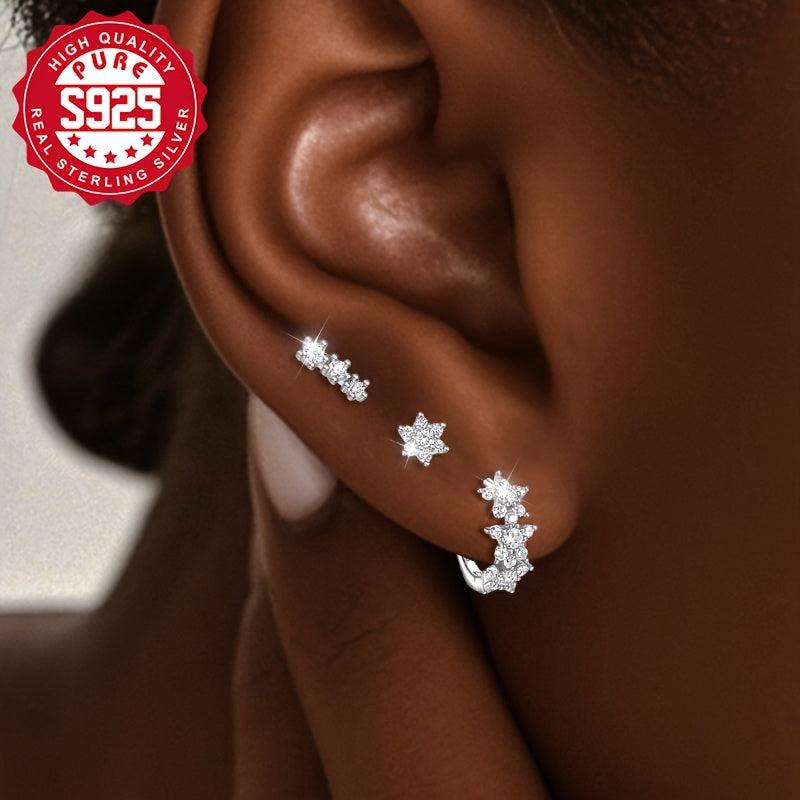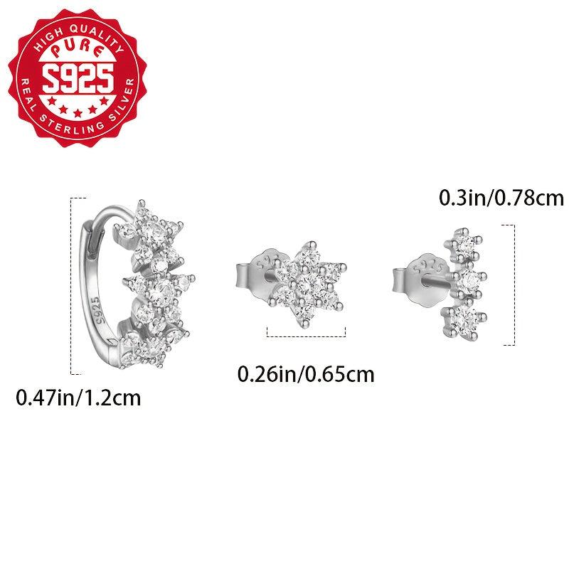 Add a touch of sparkle to your daily outfits with this set of 925 sterling silver stud earrings featuring synthetic zirconia. Perfect for those with sensitive ears, these versatile earrings are ideal for everyday wear.