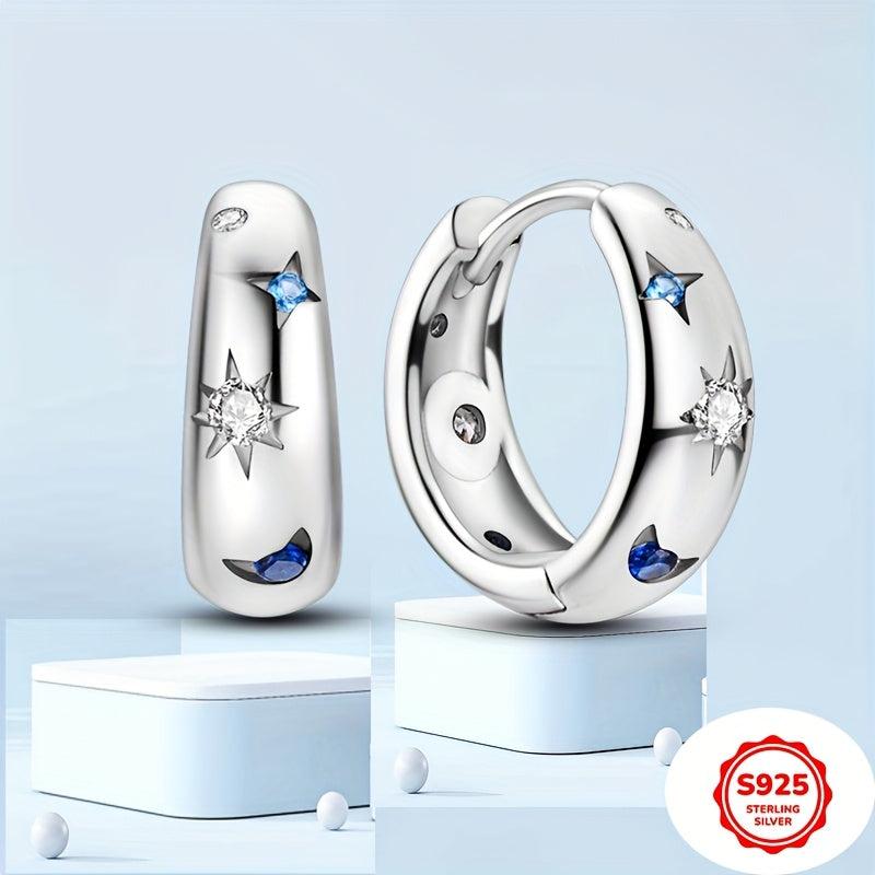 Stunning 925 silver earrings featuring a sun and moon design with cubic zirconia inlays. Ideal for weddings, parties, DIY crafts, and gifting.