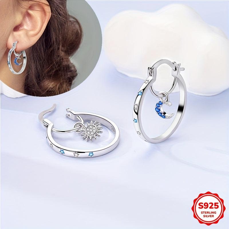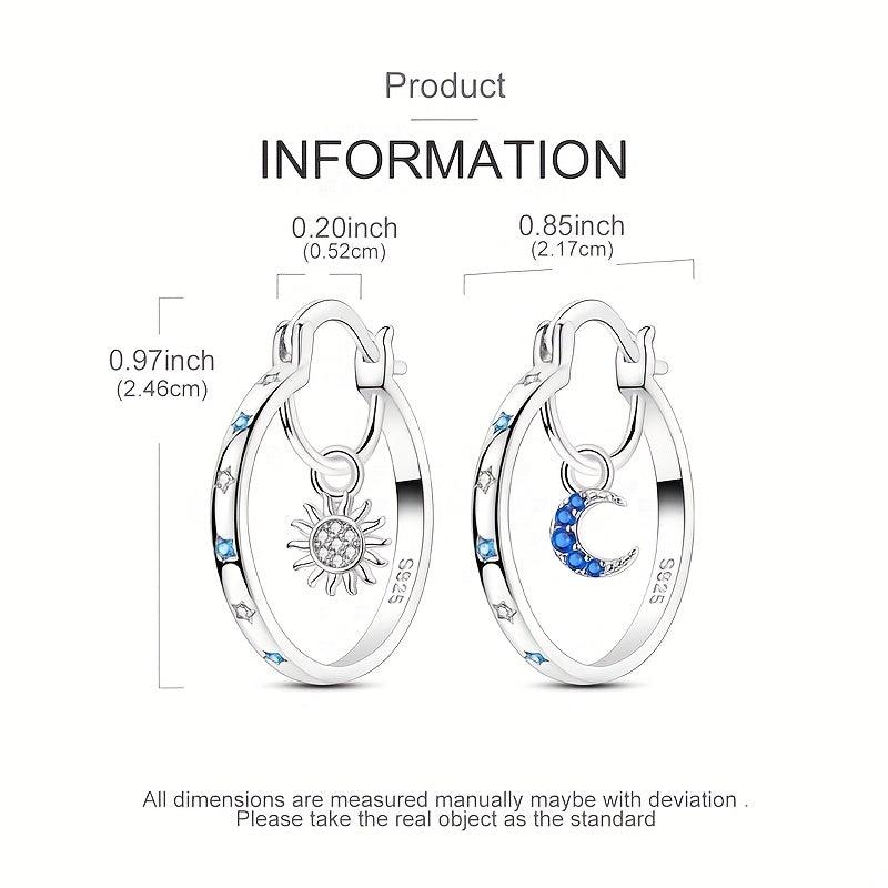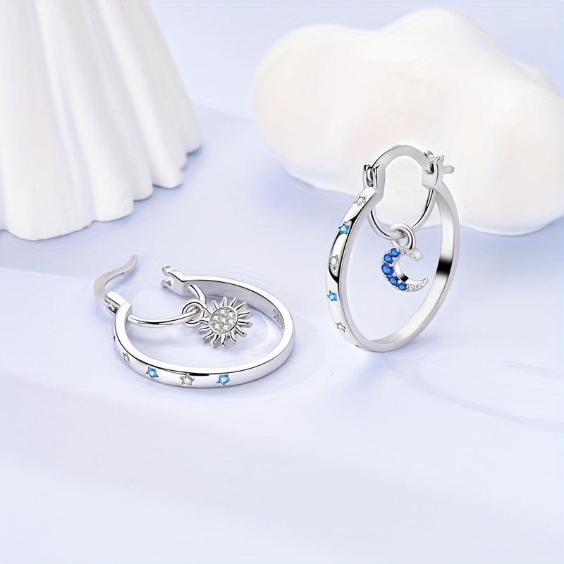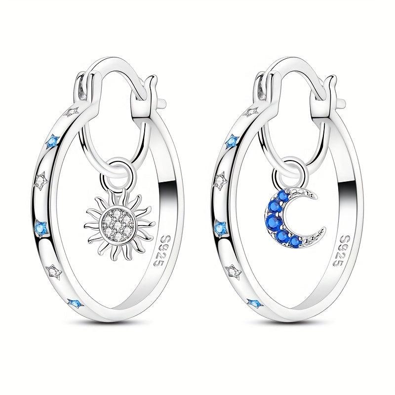 Add a celestial touch to your look with these elegant sun and moon hoop earrings. Perfect for any occasion, these 925 silver earrings are lightweight and comfortable to wear.