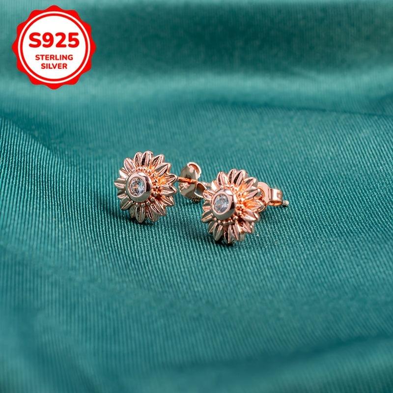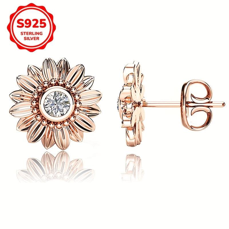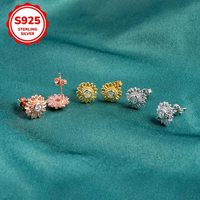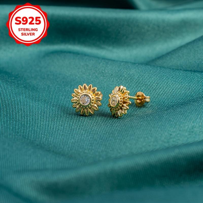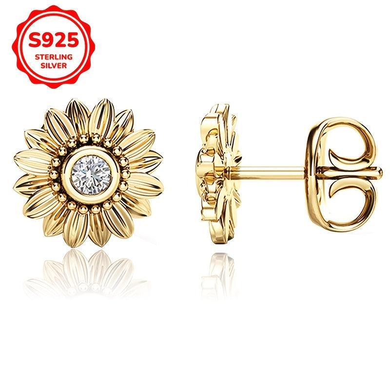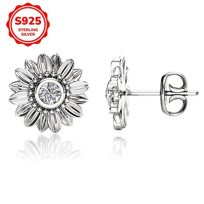 These 925 sterling silver earrings feature a sunflower motif with zirconia studs. They are lightweight and perfect for parties and all seasons.