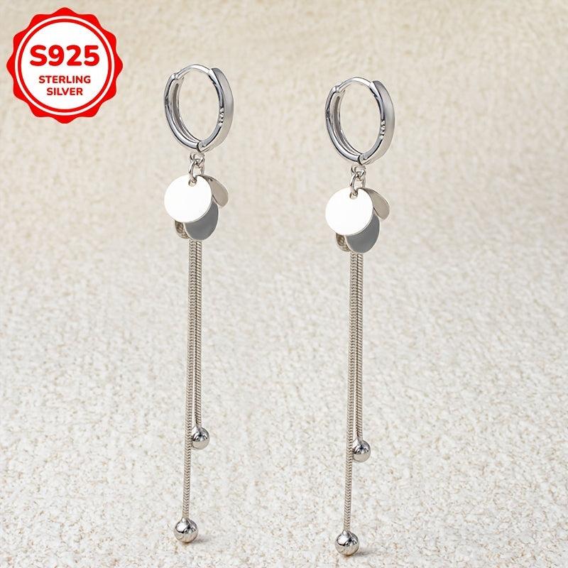 These 925 silver tassel earrings are perfect for daily wear or holiday parties. They are lightweight at 2.6g and feature a minimalist design that can elevate any outfit.