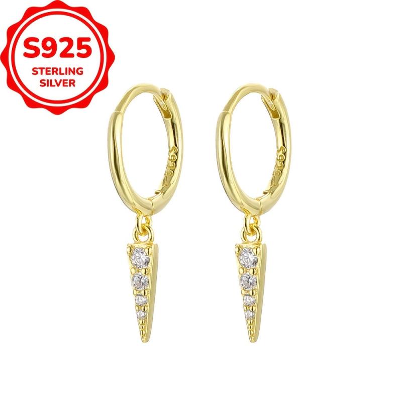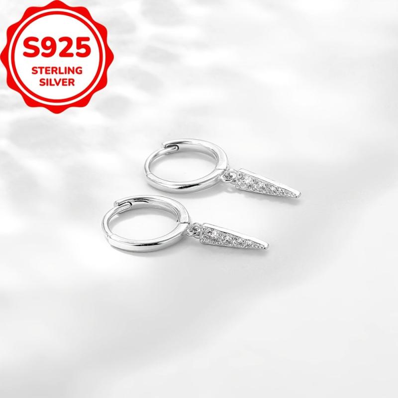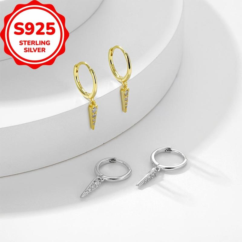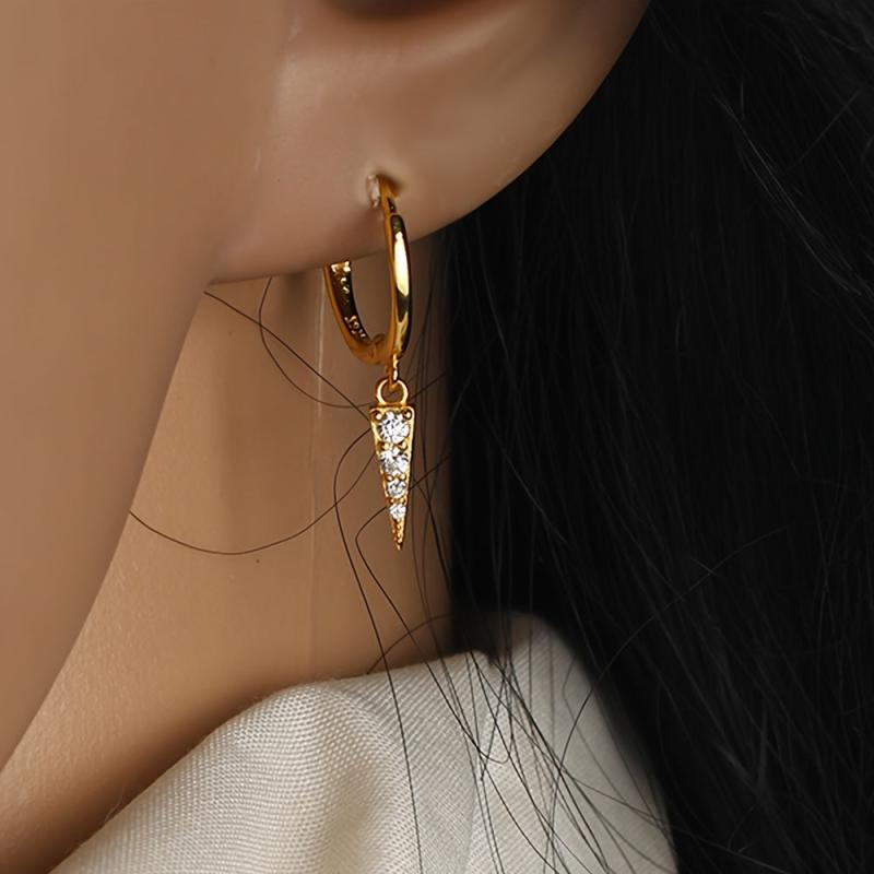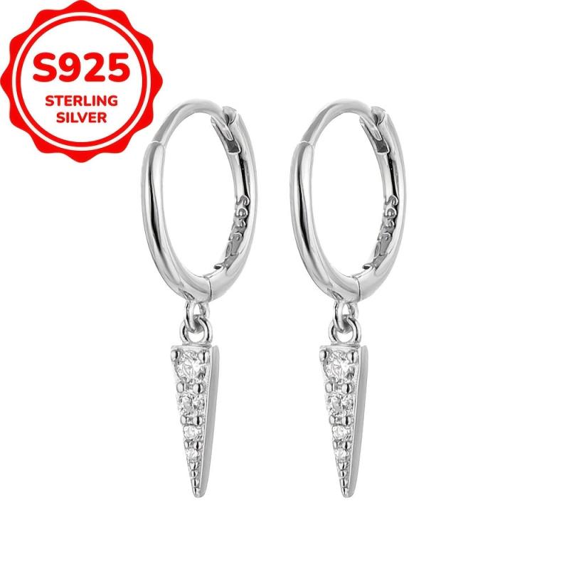 Elegant 925 sterling silver earrings with triangle pendant charm for a stylish look. Perfect for daily dressing or as a birthday gift.