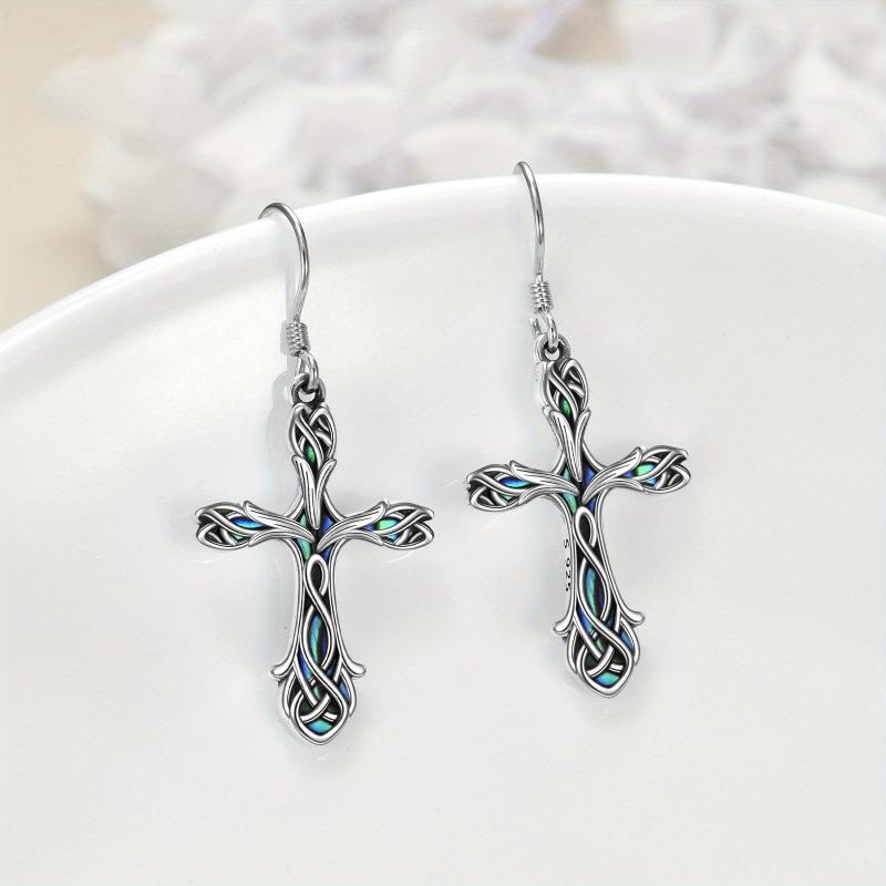 Add a touch of elegance with these tulip cross dangle earrings crafted from 925 sterling silver. Perfect for any occasion.
