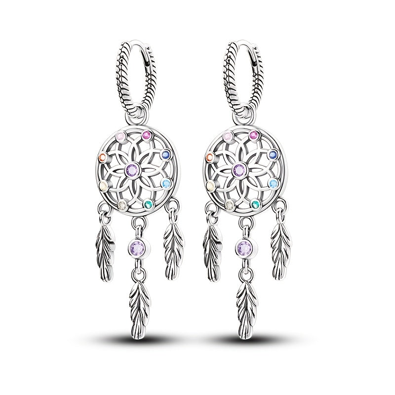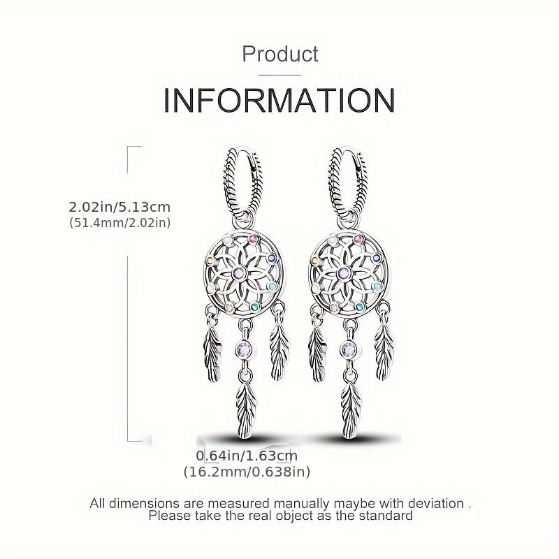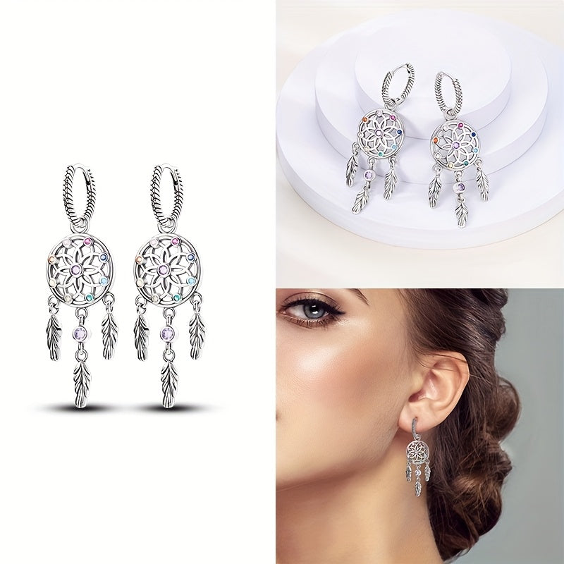 925 Silvery Dream Catcher Earrings with Snake Bone Pattern - Retro Style