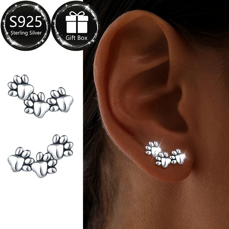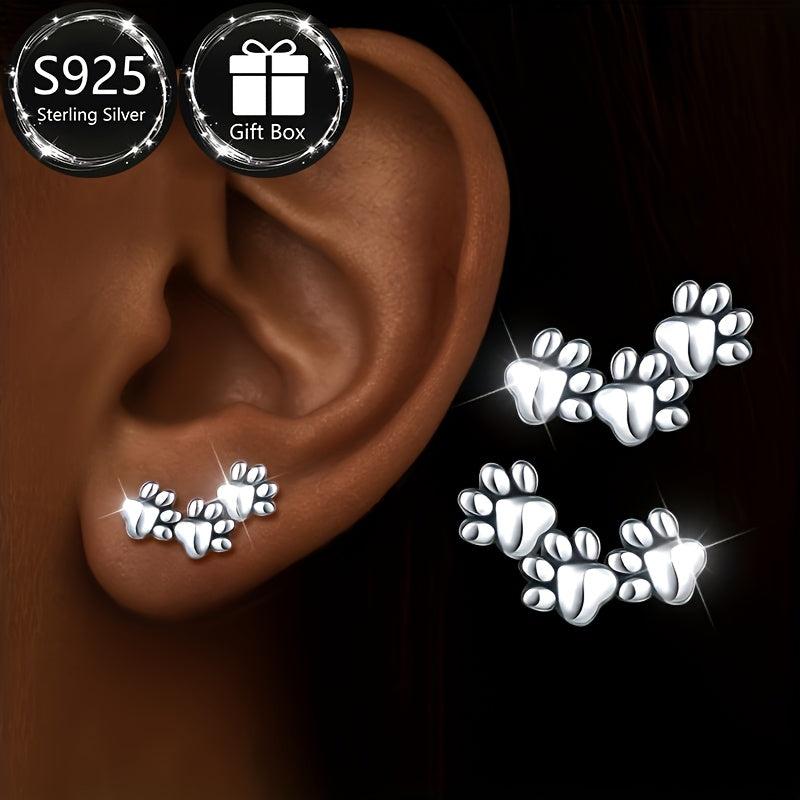 Adorable pair of 925 sterling silver animal paw earrings, perfect gift for women for Christmas and all seasons. Lightweight at 1.4g.