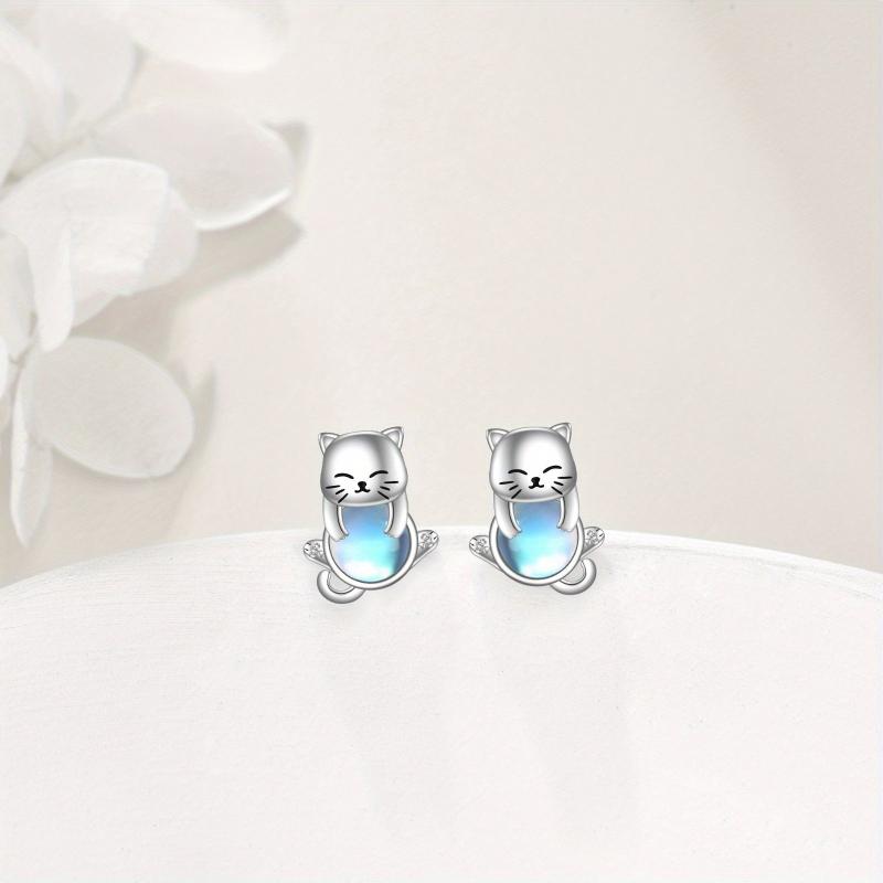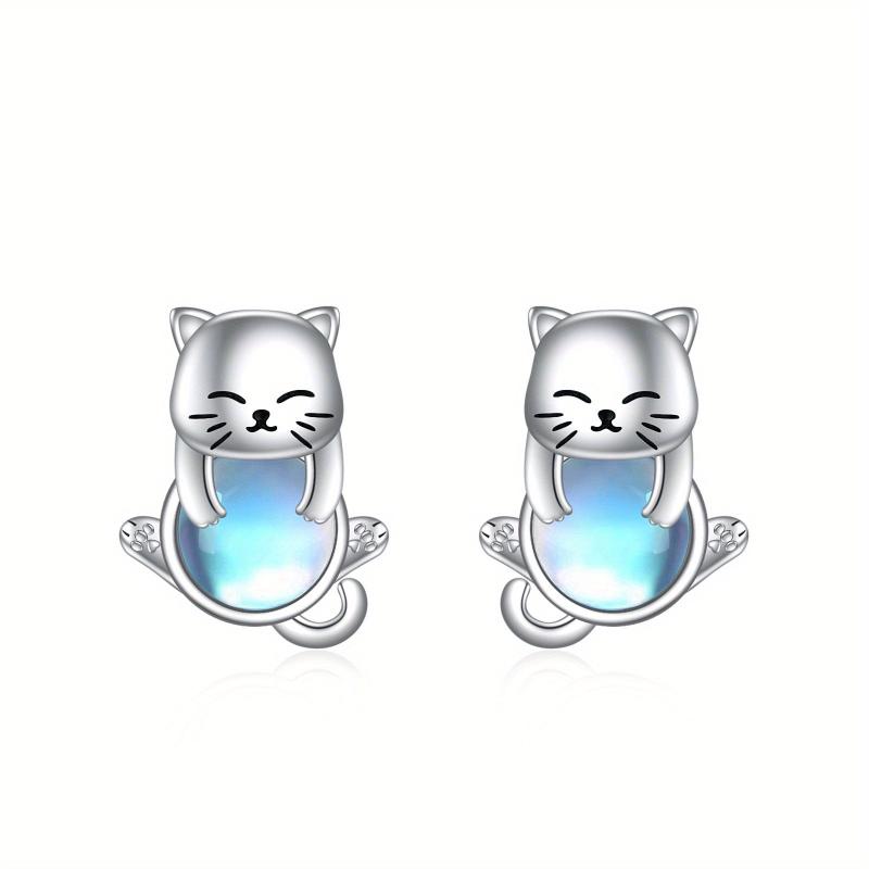 This lovely earrings set features adorable cat design with moonstone, making it a perfect birthday gift for cat lovers.
