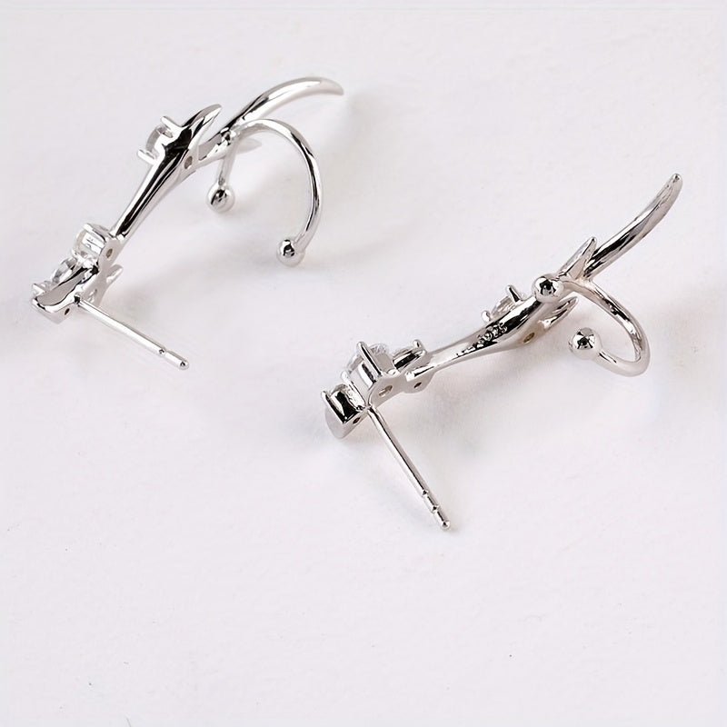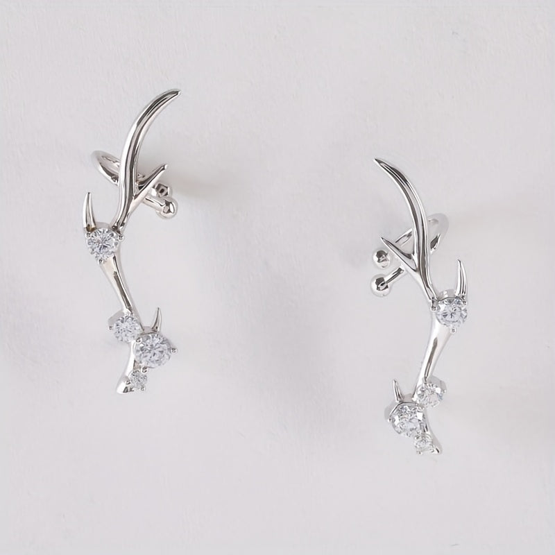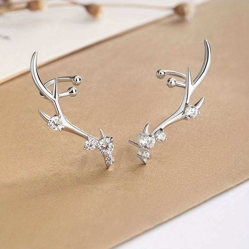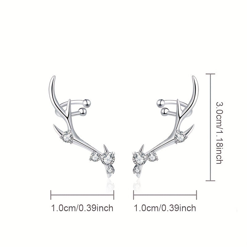 Adorn your ears with these high-end niche deer crown earrings made of 925 sterling silver and rhodium plated, featuring synthetic zirconia. Perfect for boho style enthusiasts.