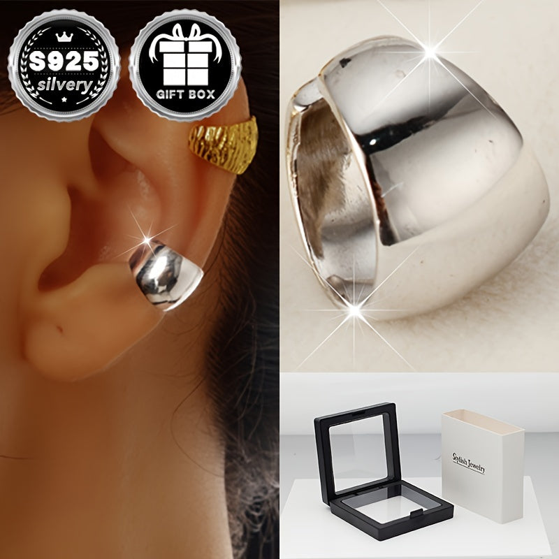 Hypoallergenic glossy ear clip for women, versatile and classic. Made of 925 sterling silver for a stylish look.