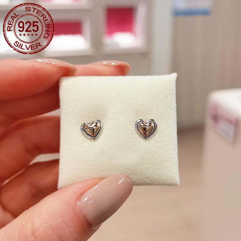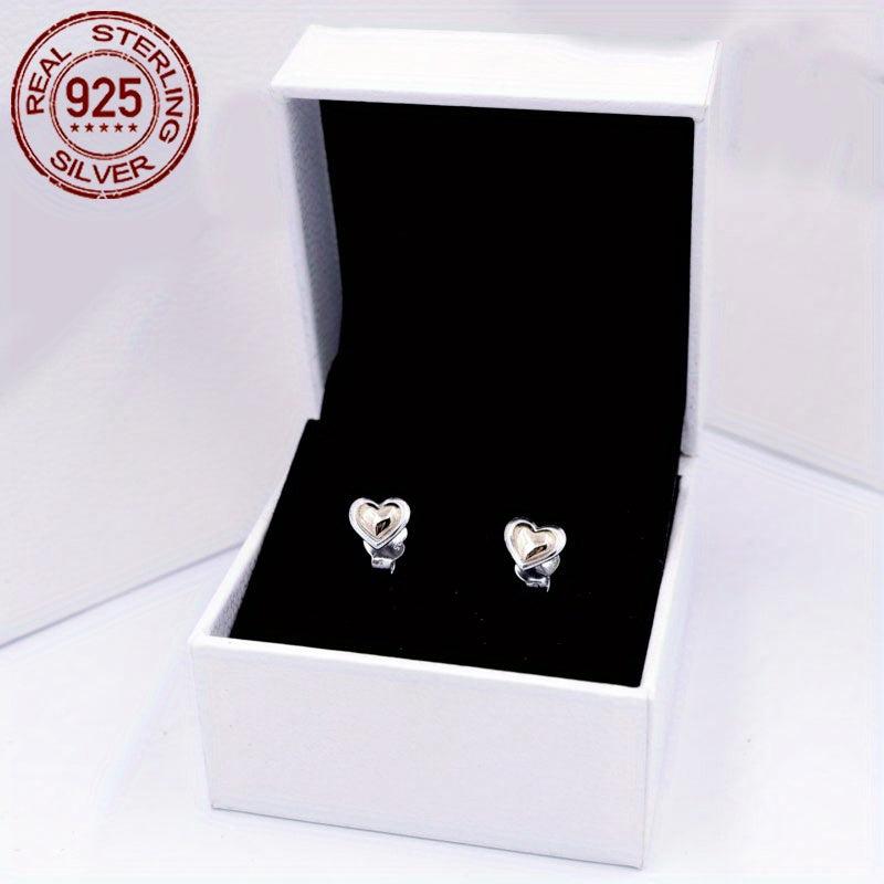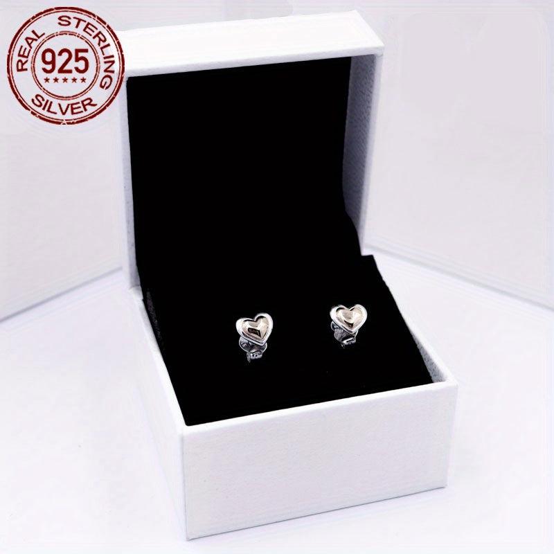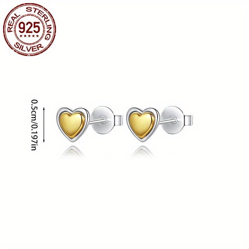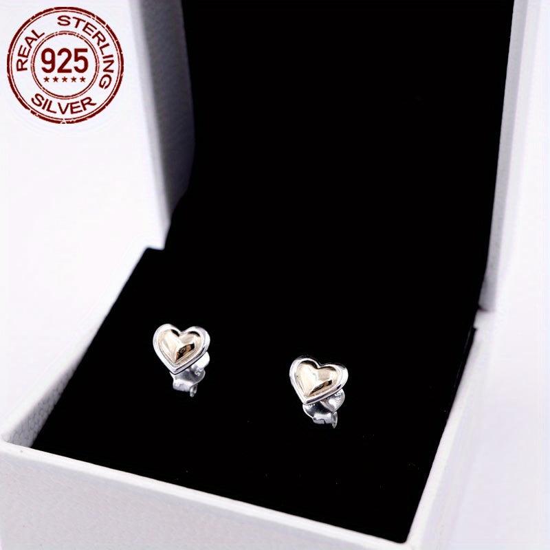 Beautiful pair of heart-shaped earrings made of 925 sterling silver with a hot golden finish. Hypoallergenic and sparkly synthetic zirconia stones, perfect for a delicate gift for weddings or parties.