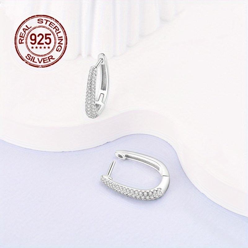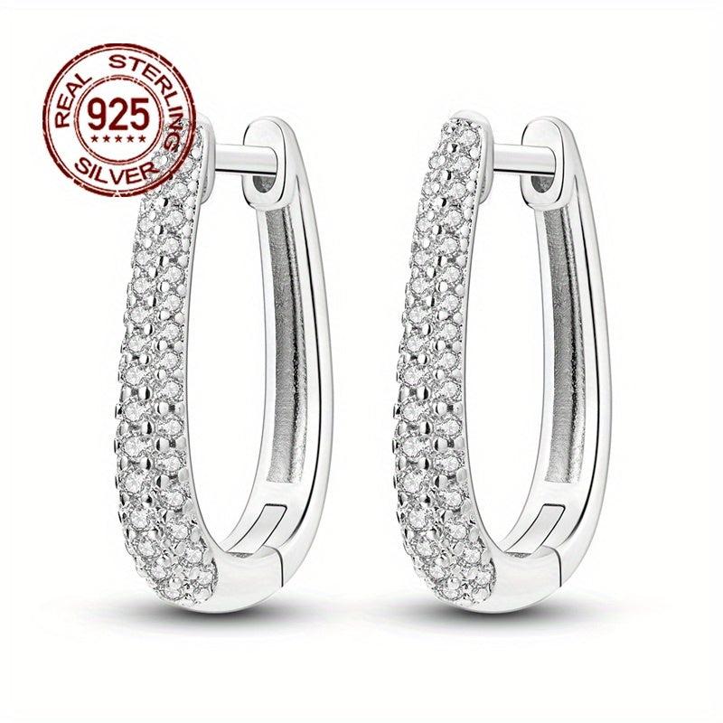 These exquisite long U-shaped earrings are crafted from high-quality 925 sterling silver and feature sparkling cubic zirconia stones. They are perfect for weddings and parties, and make an ideal gift. The earrings are allergy-friendly and designed to turn heads wherever you go.
