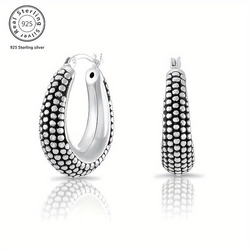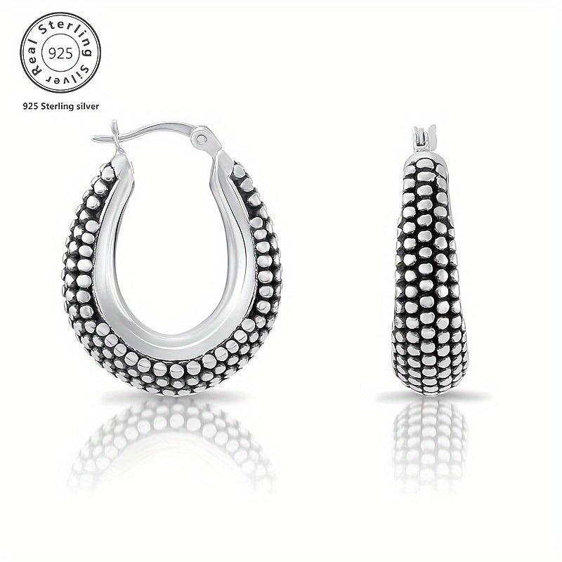 925 Sterling Silver Vintage Two Tone Beaded Ethnic Hoop Earrings