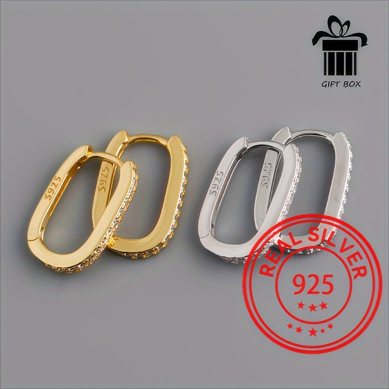 Elevate your style with these gorgeous rectangular earrings made of 925 sterling silver and adorned with sparkling zirconia. Ideal for sensitive skin.
