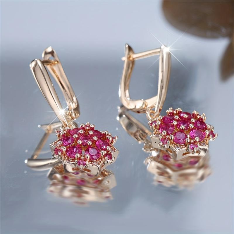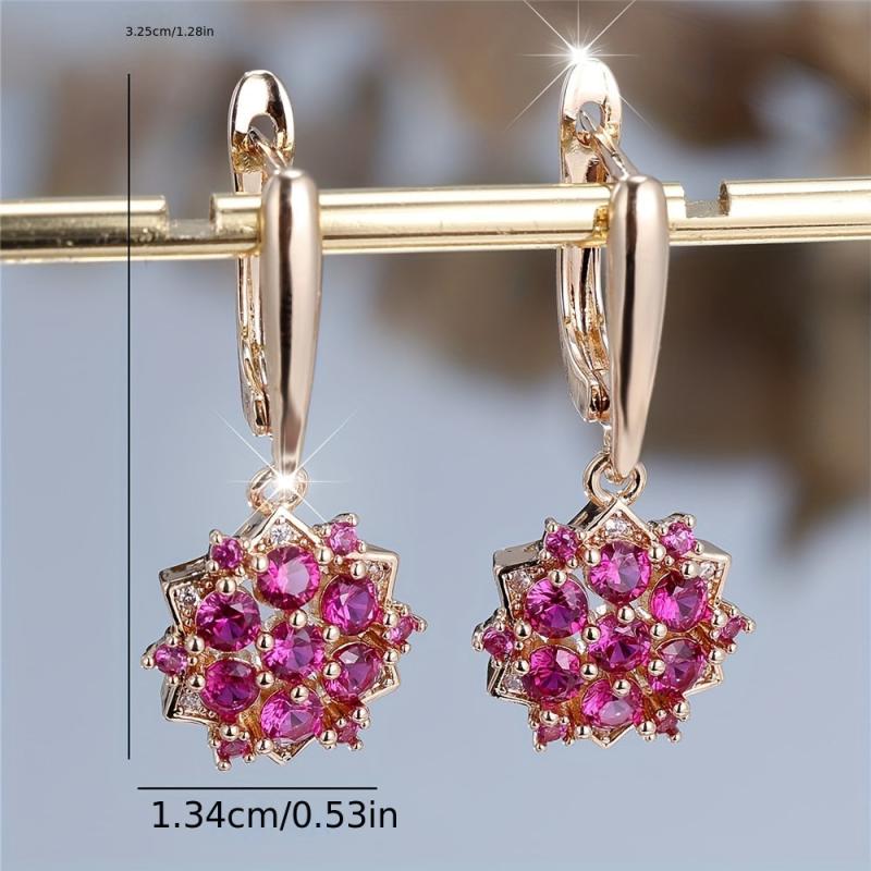 Beautiful vintage sunflower dangle earrings with pink and clear synthetic stones in golden tone metal. Perfect for weddings and parties or as a gift.