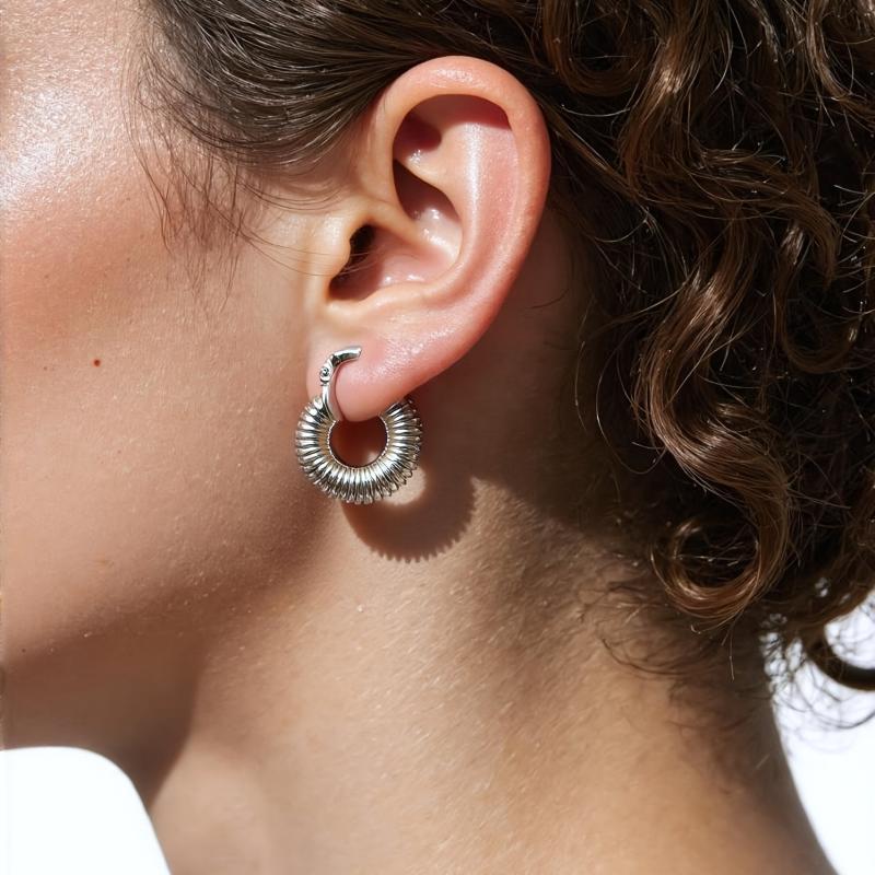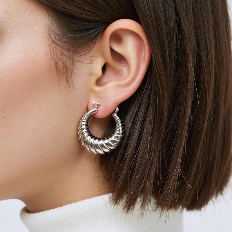 Elevate your style with these silvery plated copper earrings, perfect for parties, dinners, clubs, and as a gift for Mother's Day. Long-lasting quality for years to come.