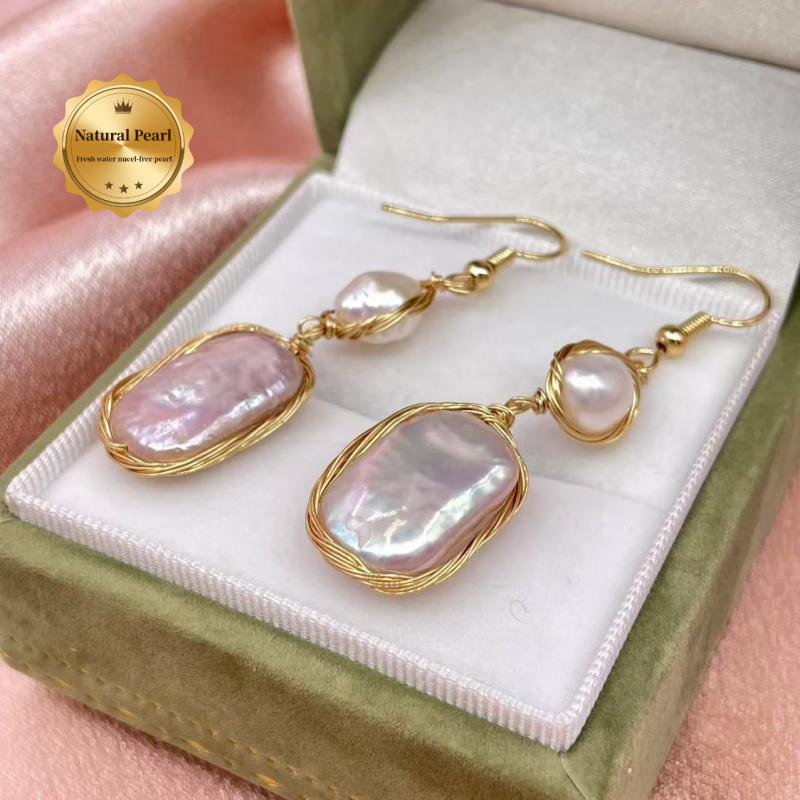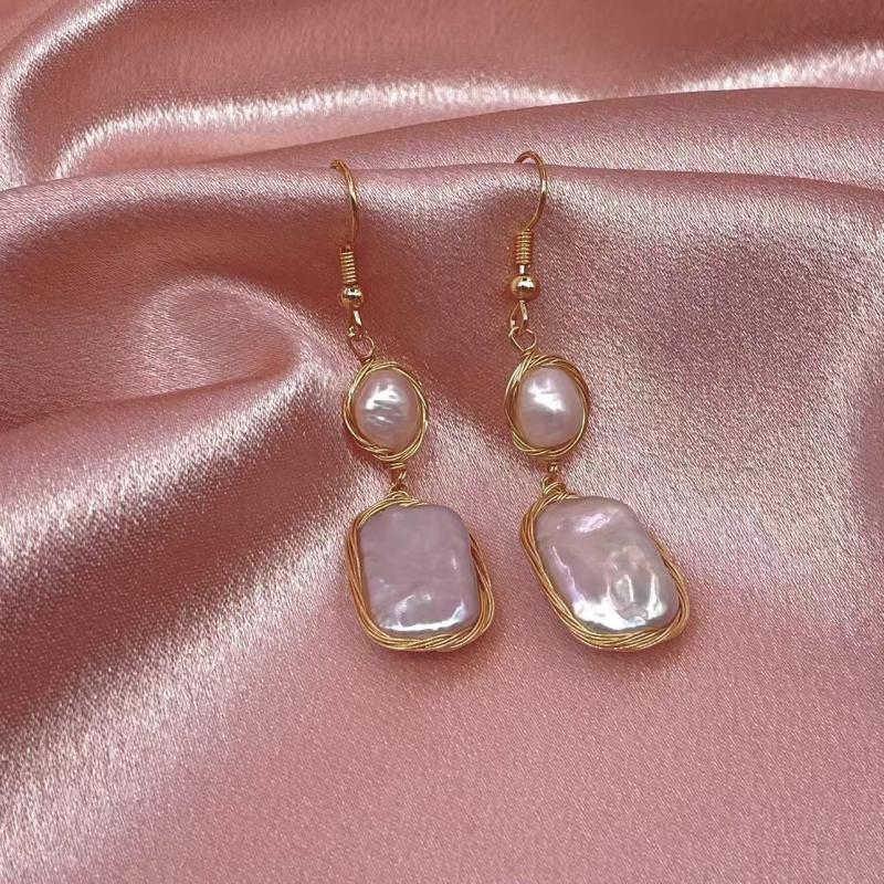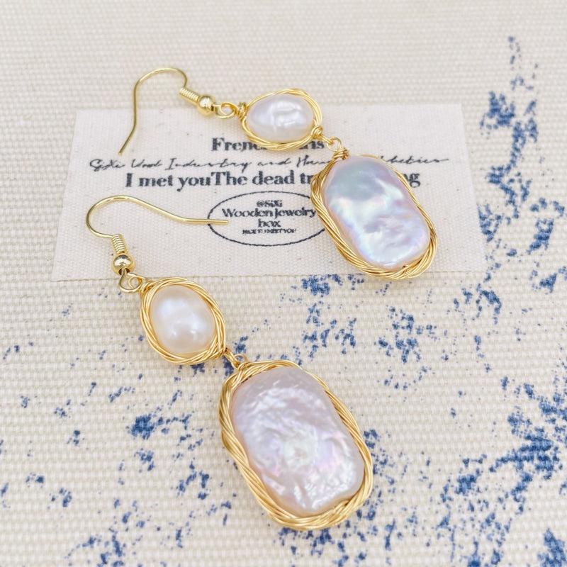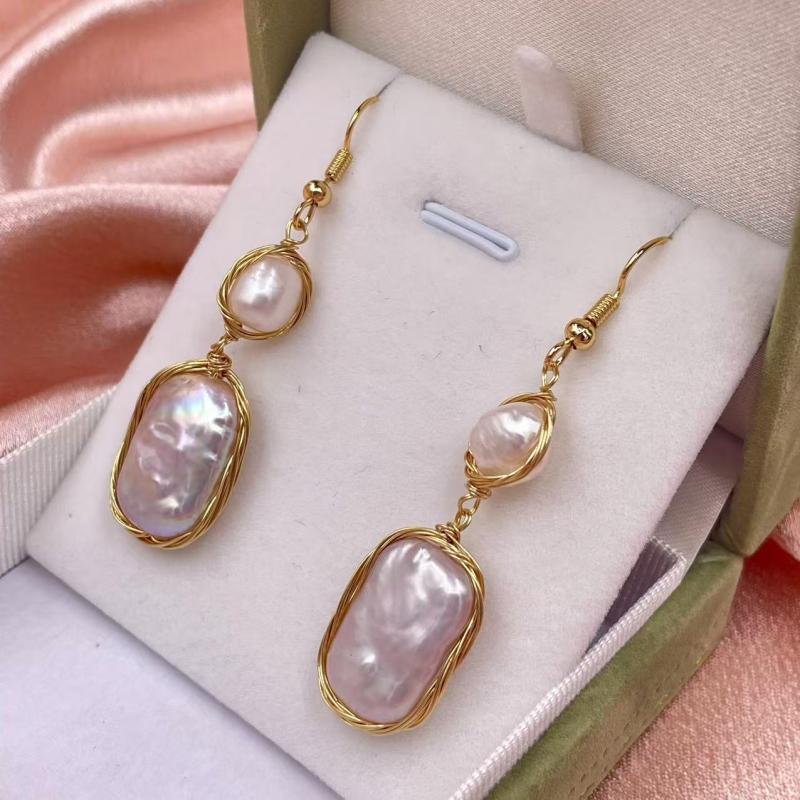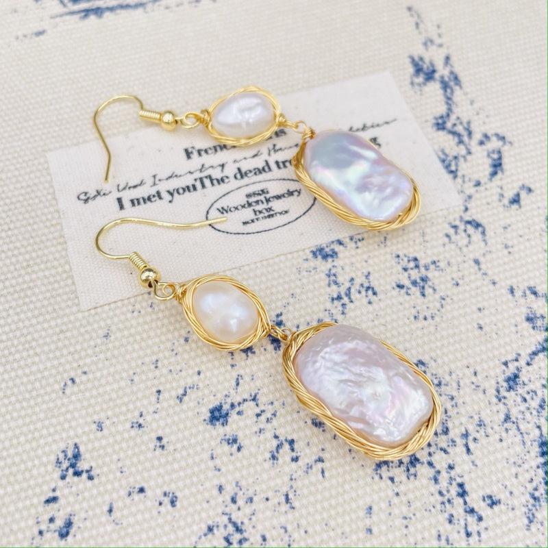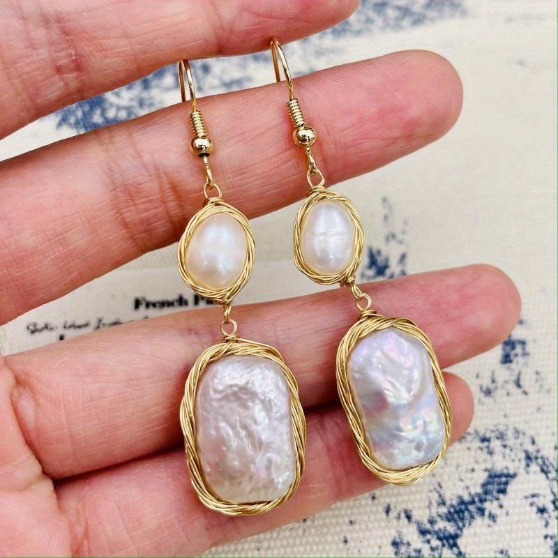 Add a touch of vintage Bohemian style with these unique baroque freshwater pearls earrings. The irregular shape and golden tone wire wrapping make them a perfect gift for women.