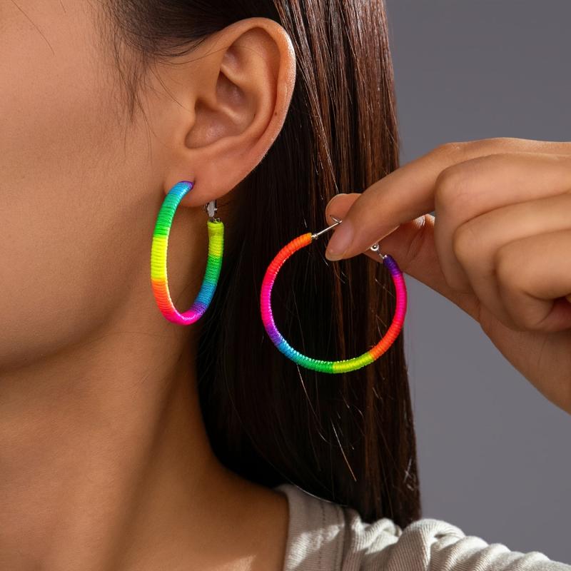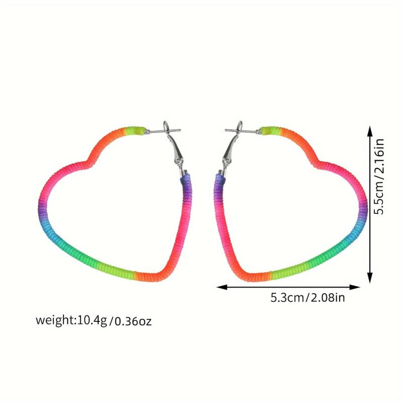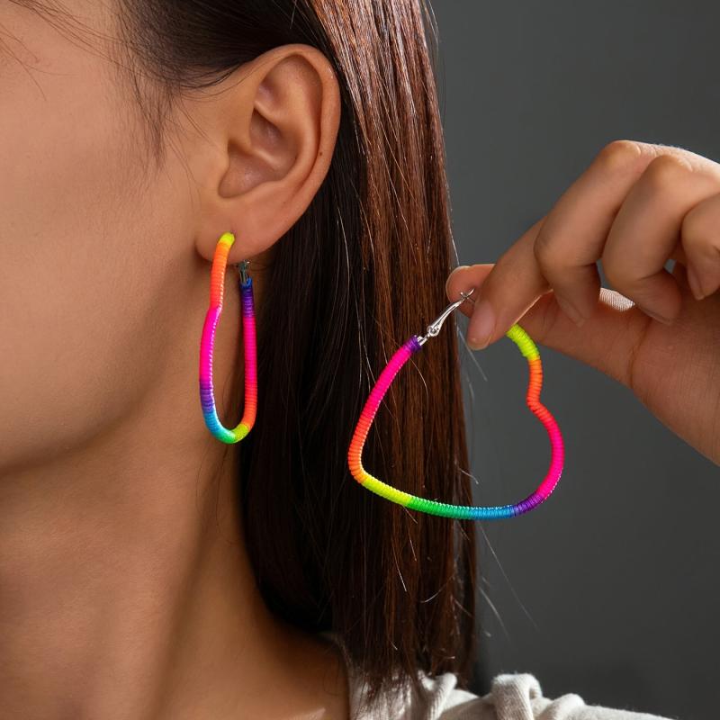 These colorful heart-shaped hoop earrings are a vibrant addition to your style. Perfect for all seasons, ideal for daily wear or as a gift. Quirky and fun design.