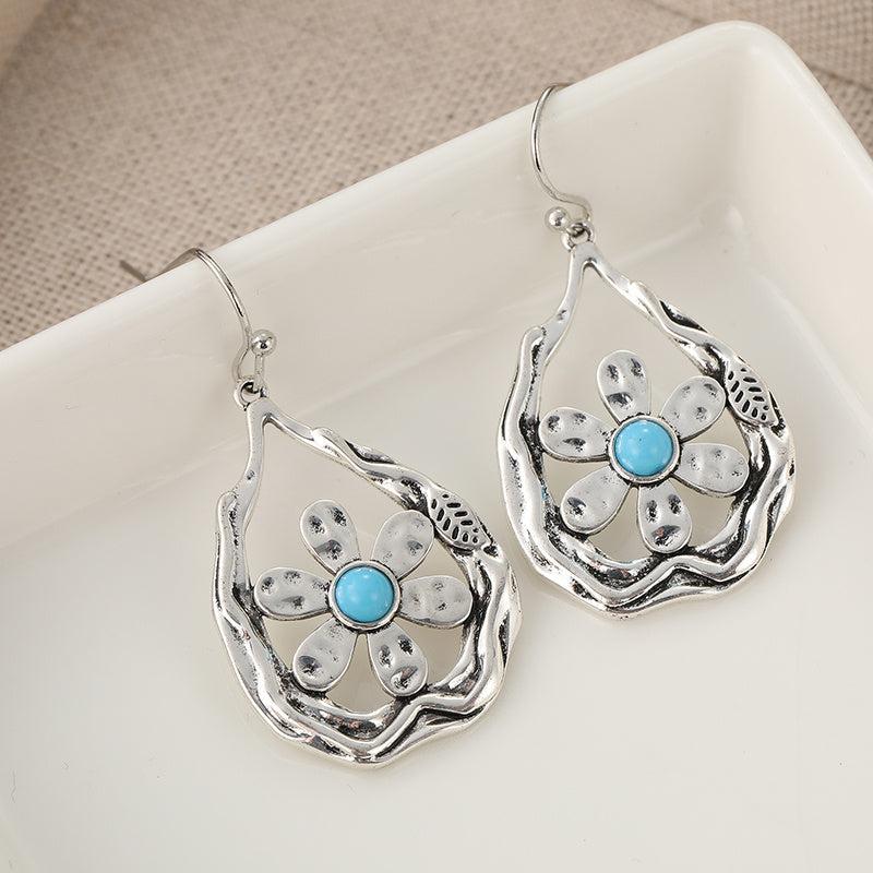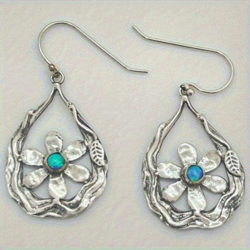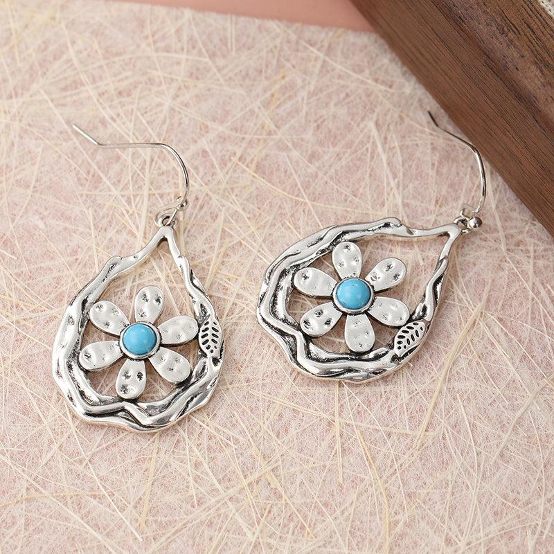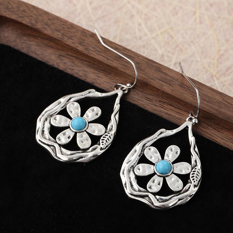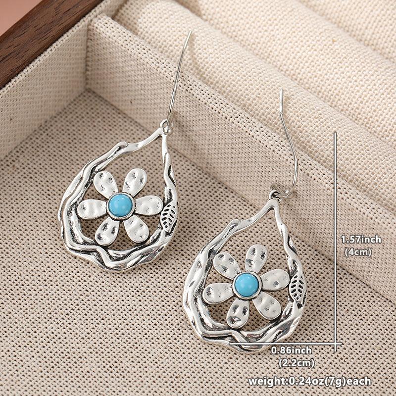 These vintage-inspired water droplet shaped pendant earrings showcase a bohemian style with beautiful flowers. Perfect for women's wear and a great addition to any outfit.