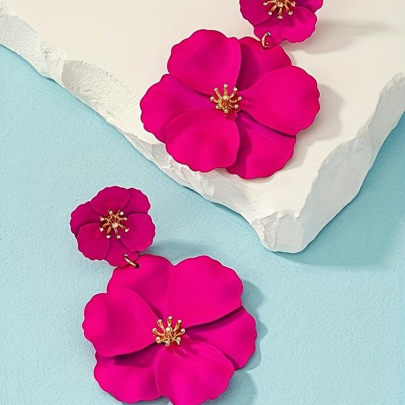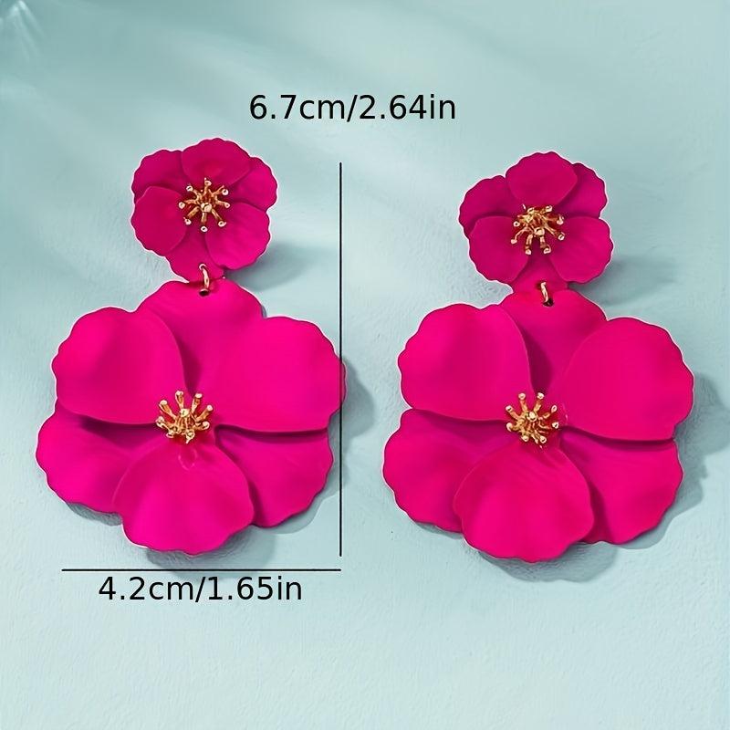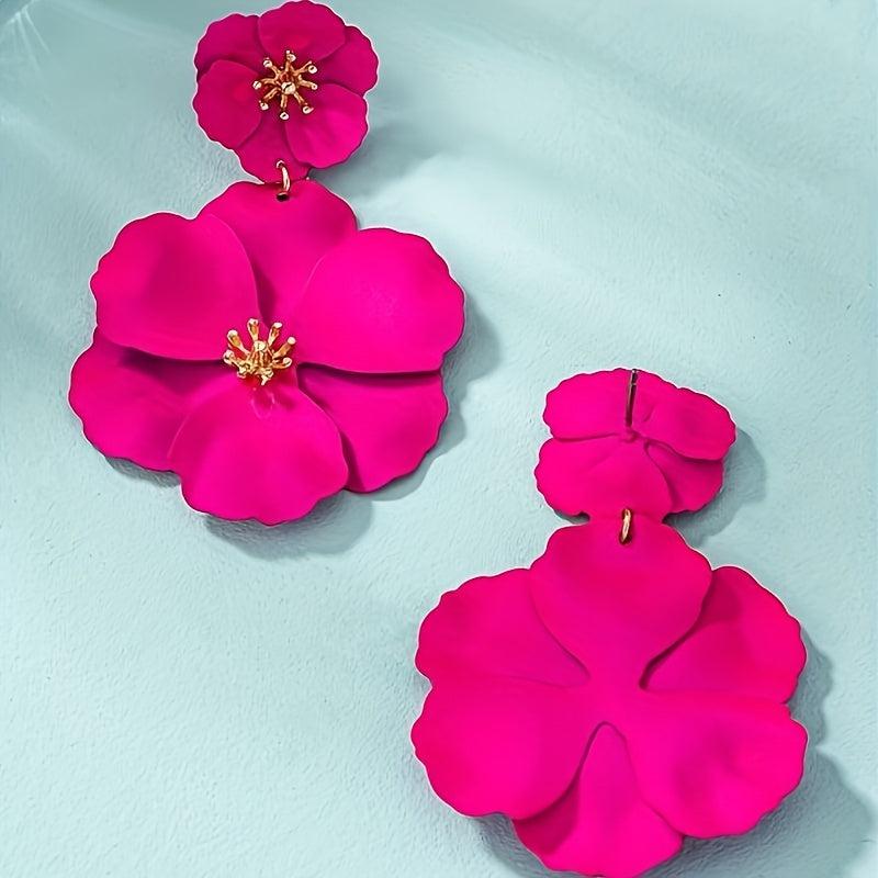 Add a touch of bohemian flair to your outfit with these fashionable fuchsia flower drop earrings. Perfect for parties, vacations, or any season.