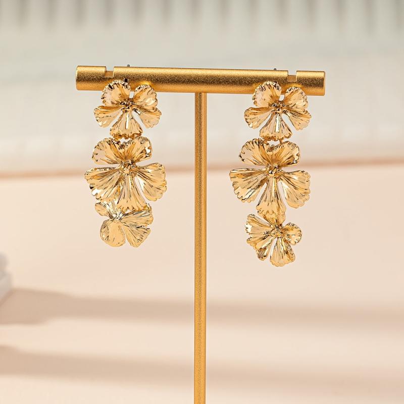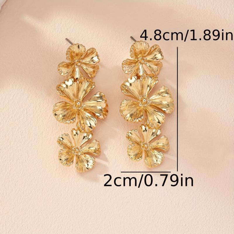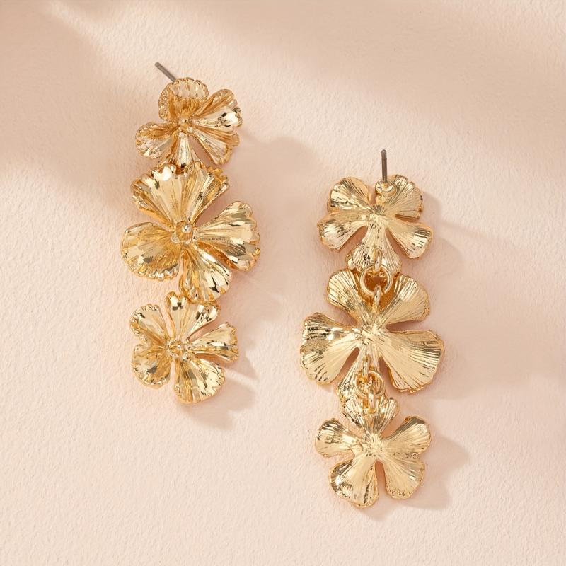 These stylish dangle earrings feature intricate petal design in a golden color. Perfect for casual attire and adding a touch of elegance to your look.