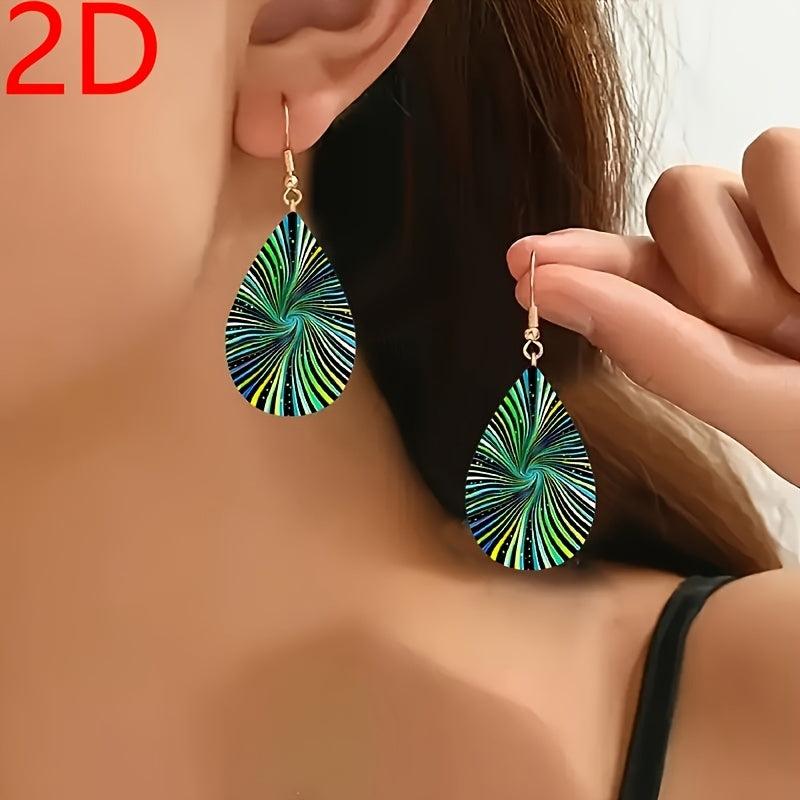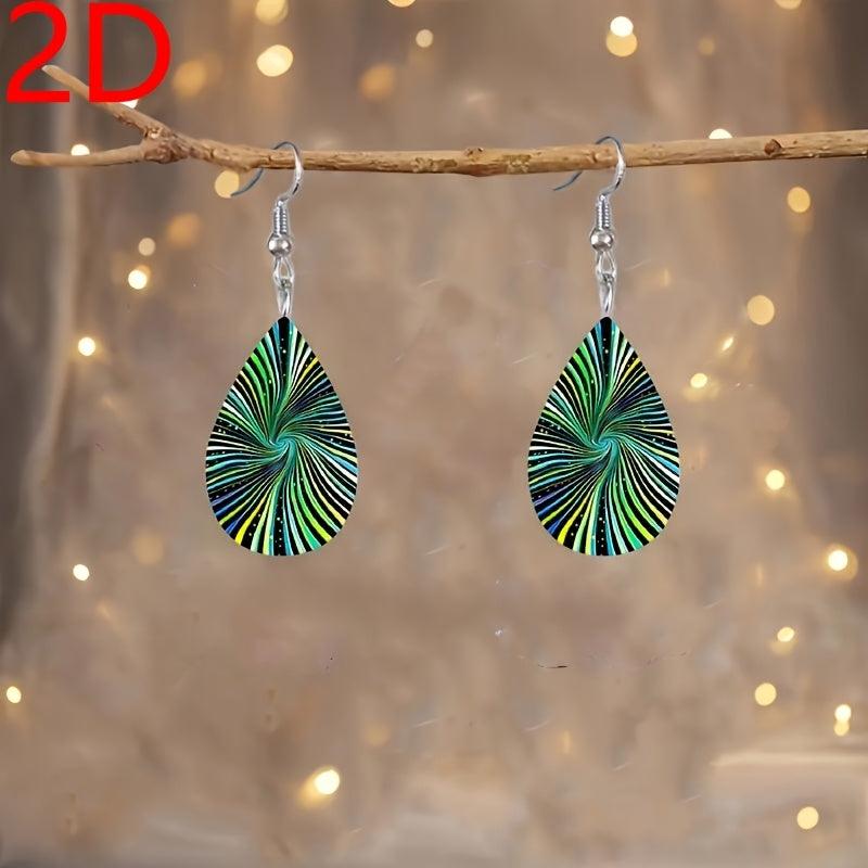 These elegant earrings are perfect for women, featuring a stylish green and striped teardrop design. They make a great gift for mothers, Christmas, birthdays, and special occasions.